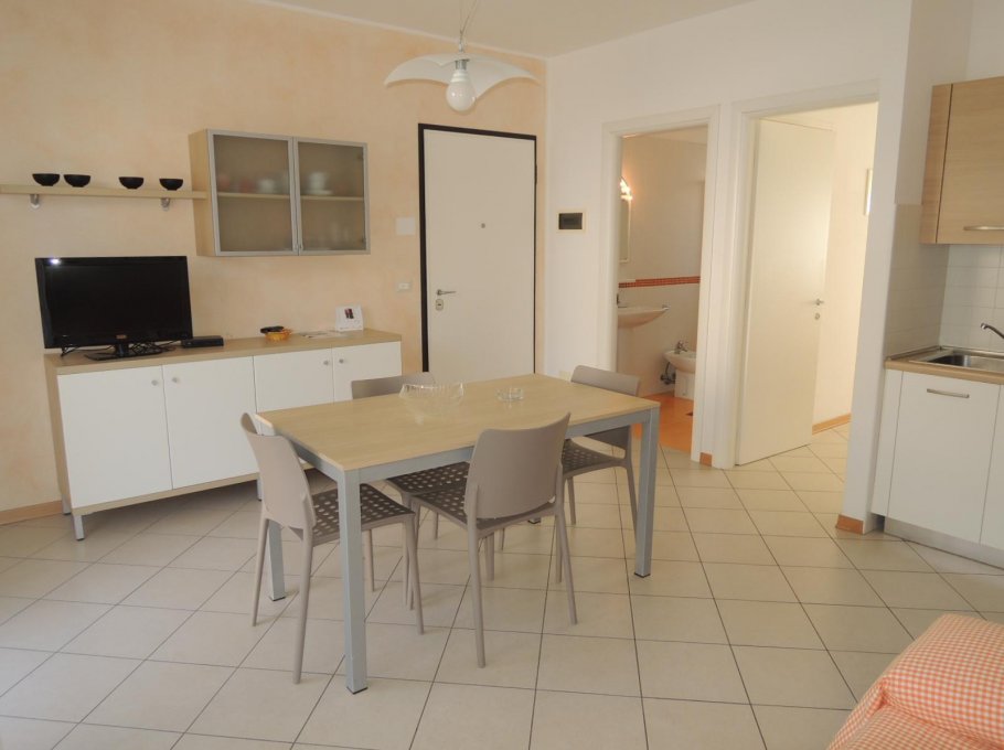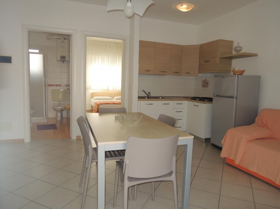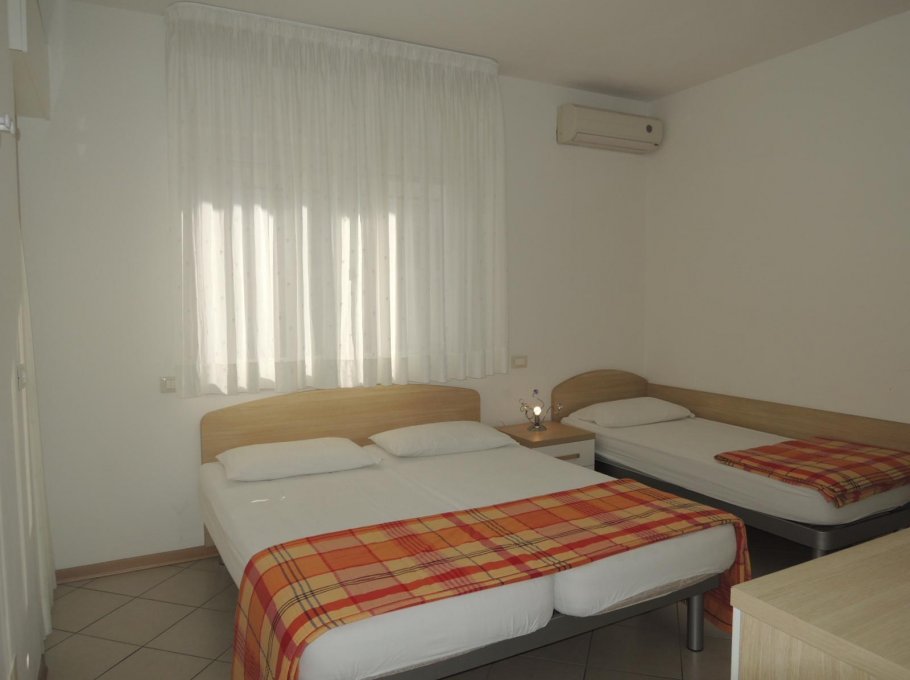 2 buildings with 13 roomy one/two-room apartments (all together) with big balconies and private parking lots, in a quiet area in Sabbiadoro, 150 meter away to the beach; FRONT SIDE (via Adriatica): complete new (since 2006), comfortable and bright, with air conditioned, sat-TV, safe, washing machine and big balcony; all the bathrooms with box shower; BACK SIDE: 3 apartments (one each floor) with 2 bedrooms each, very big terrace or garden on the ground floor,air conditioned, safe, sat-tv, washing machine; all the bathrooms are with box shower, and 4 apartments (2 each floor) with 1 bedroom each (max 3 persons), with air conditioned, safe, sat-tv and bathroom with box shower.