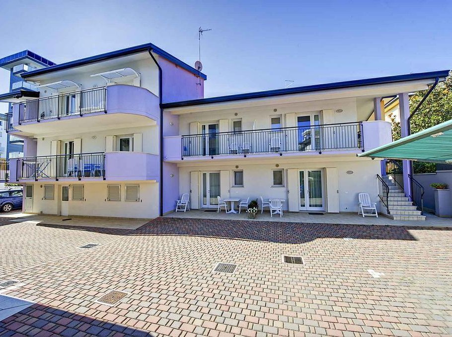 2 buildings with 13 roomy one/two-room apartments (all together) with big balconies and private parking lots, in a quiet area in Sabbiadoro, 150 meter away to the beach; FRONT SIDE (via Adriatica): complete new (since 2006), comfortable and bright, with air conditioned, sat-TV, safe, washing machine and big balcony; all the bathrooms with box shower; BACK SIDE: 3 apartments (one each floor) with 2 bedrooms each, very big terrace or garden on the ground floor,air conditioned, safe, sat-tv, washing machine; all the bathrooms are with box shower, and 4 apartments (2 each floor) with 1 bedroom each (max 3 persons), with air conditioned, safe, sat-tv and bathroom with box shower.