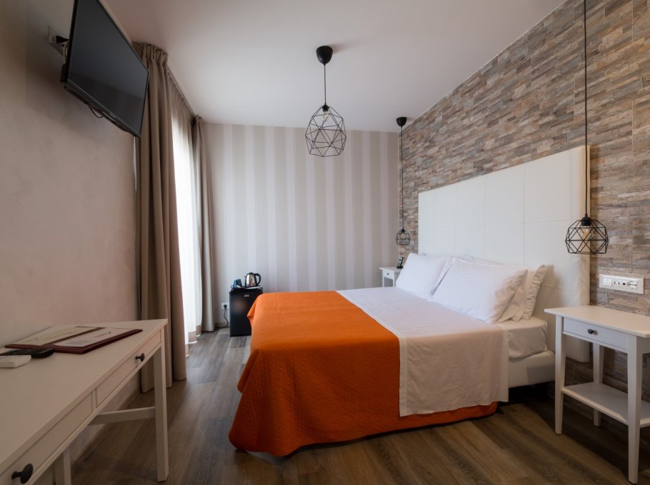 Pagato la camera doppia con aggiunta di letto singolo e avuto una stanza doppia senza luce, minibar non funzionante, niente parcheggio, niente WiFi in stanza. Colazione misera.