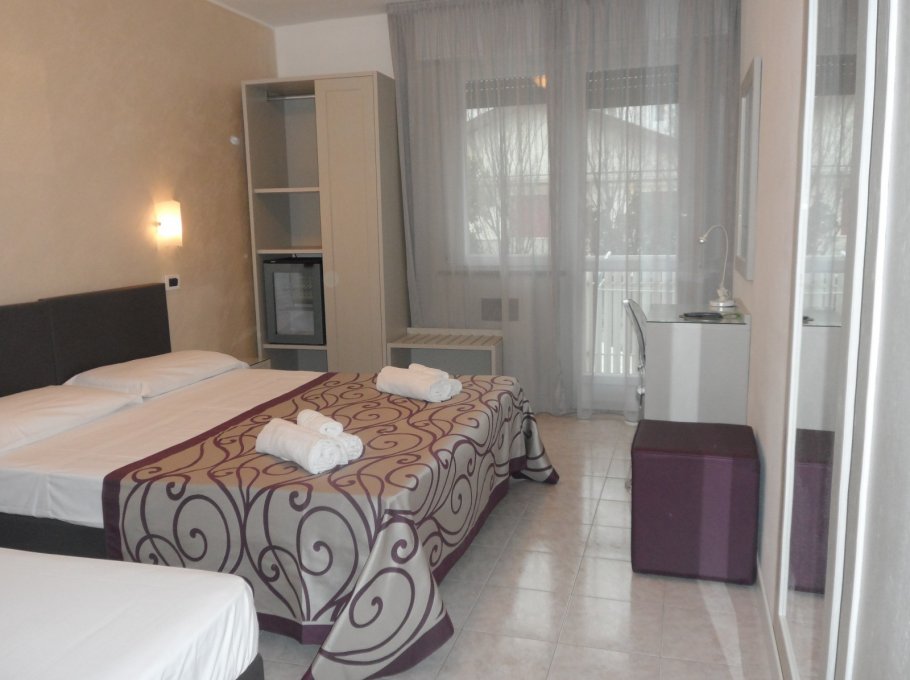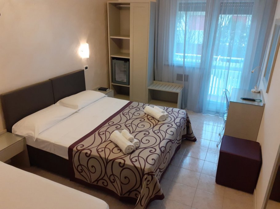 Situated only a few steps from the beach and 5 minutes from the pedestrian zone of Lignano Sabbiadoro, however in a quite place, is the ideal solutions for your holiday. You can choose between single, double, triple or family rooms, all equipped with bathroom, shower box, satellite-TV, air-conditioning, safe, telephone and terraces. At the Hotel Gloria you will taste a rich breakfast buffet to start your day in a wonderful way and a varied lunch and dinner menu. Our guests can enjoy at our Hotel-Bar. Moreover, our hotel provides a variety of services: Wi-Fi in the living room, in reception and in the dining room and concierge service. Included in the price is a beach-umbrella with two beach-beds in our privat beach area. Pets are allowed in our hotel and they are free! The use of hotel-bikes, one parking space for each room and the use of the swimmingpools of the Bar Sabbiadoro are free.