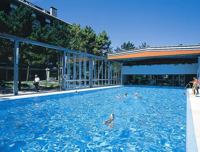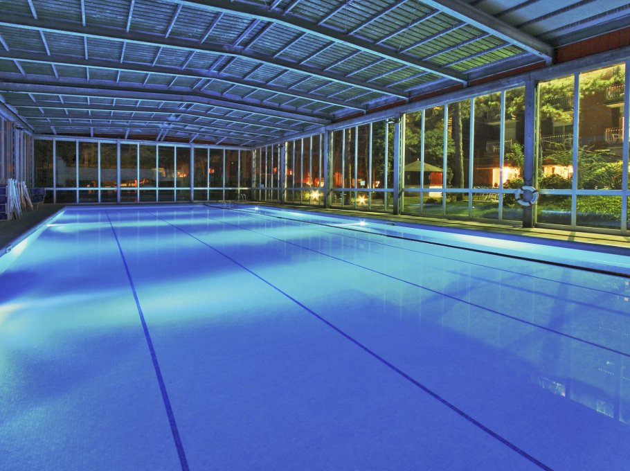 La piscina semiolimpionica immersa nel verde gode di un'ottima posizione rispetto al sole e può essere scoperta o coperta con una moderna struttura vetrata. L'acqua è riscaldata ad una temperatura costante di 28°C.