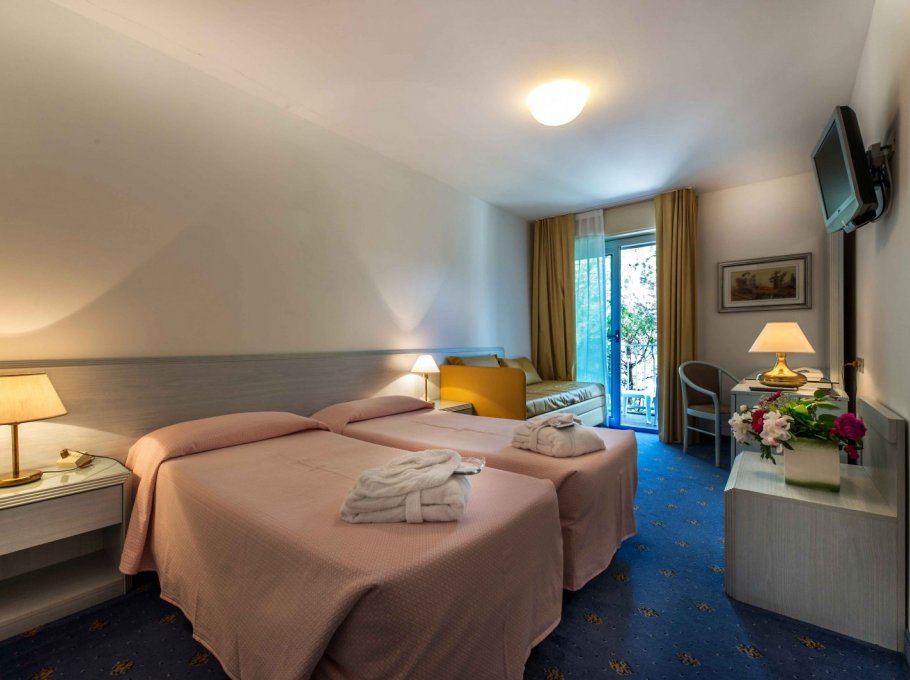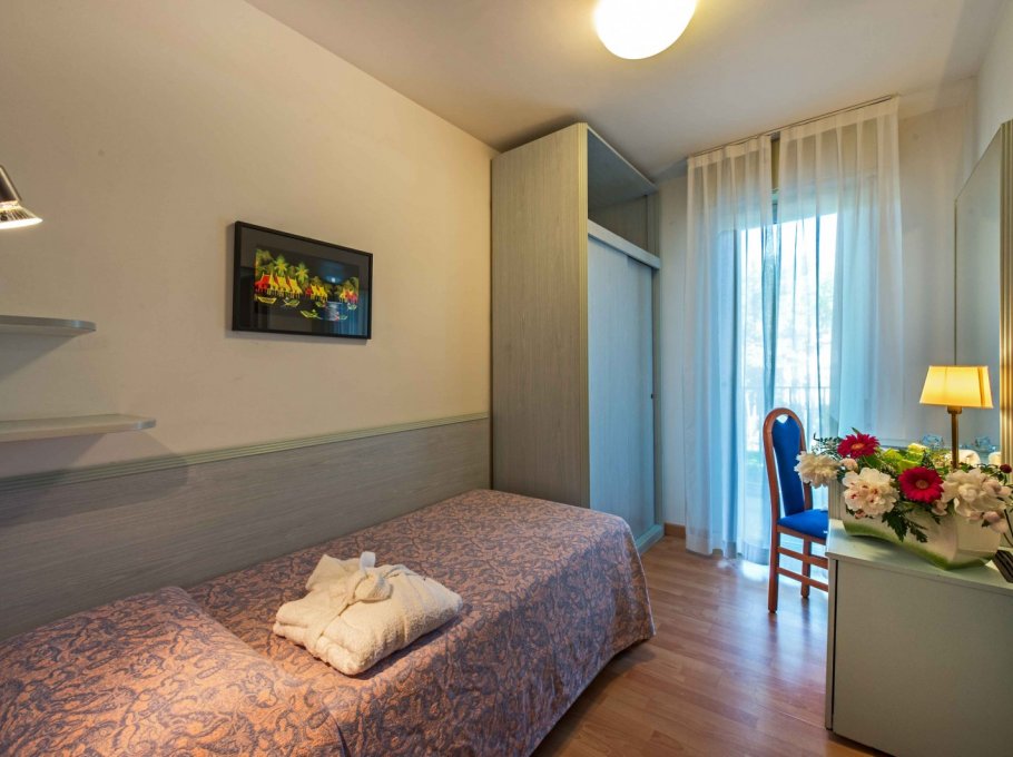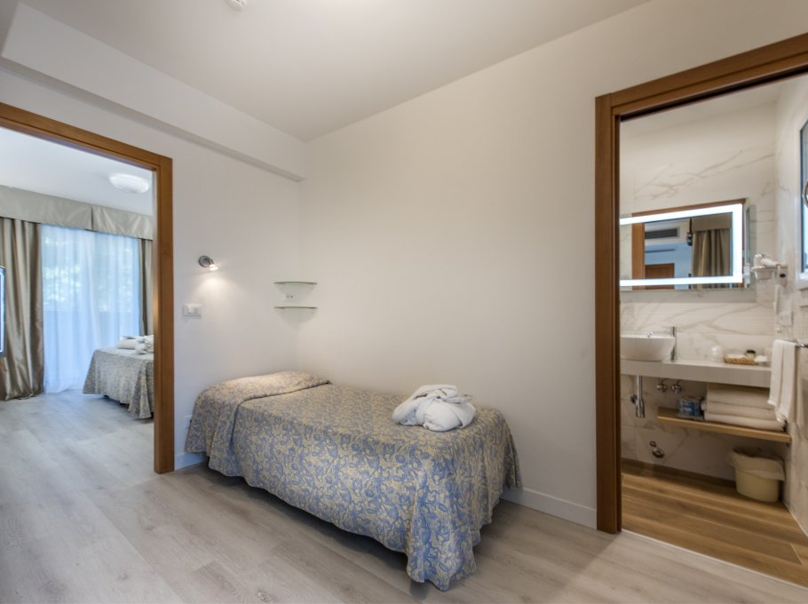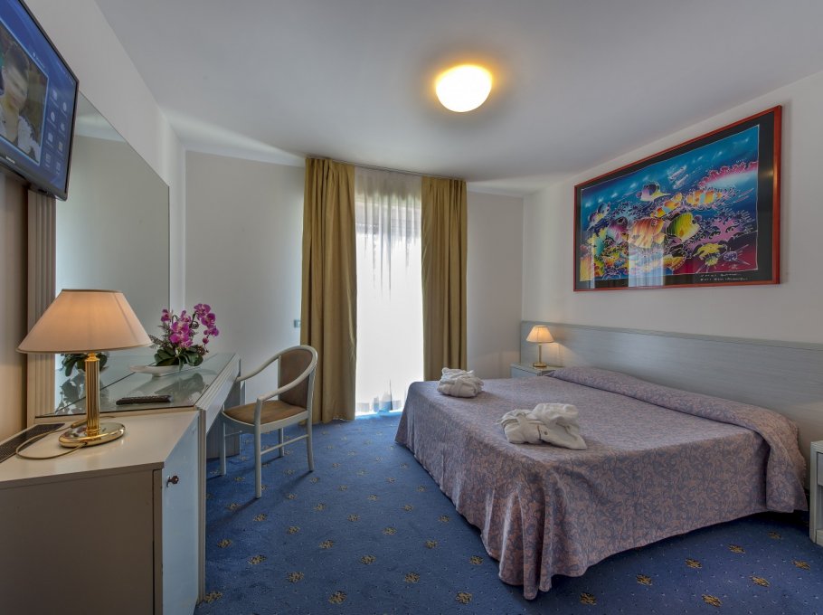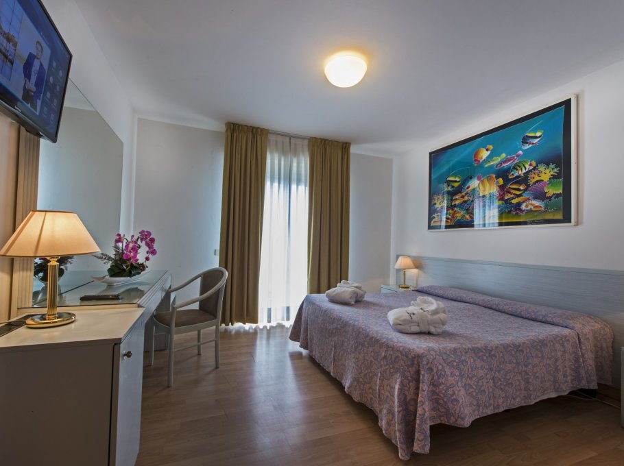 L'albergo è dotato di camere singole, doppie, Suite per famiglie e doppie comunicanti, tutte con terrazza panoramica sulla piscina o sulla pineta, frigobar, aria condizionata, telefono, TV-SAT, e bagno completo di tutti i comfort.