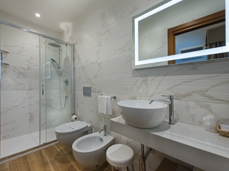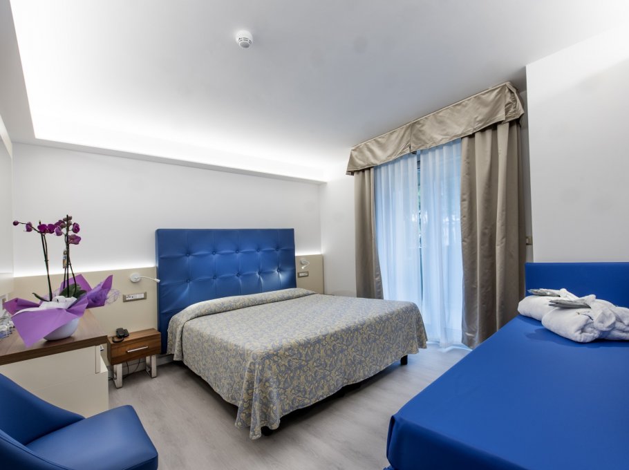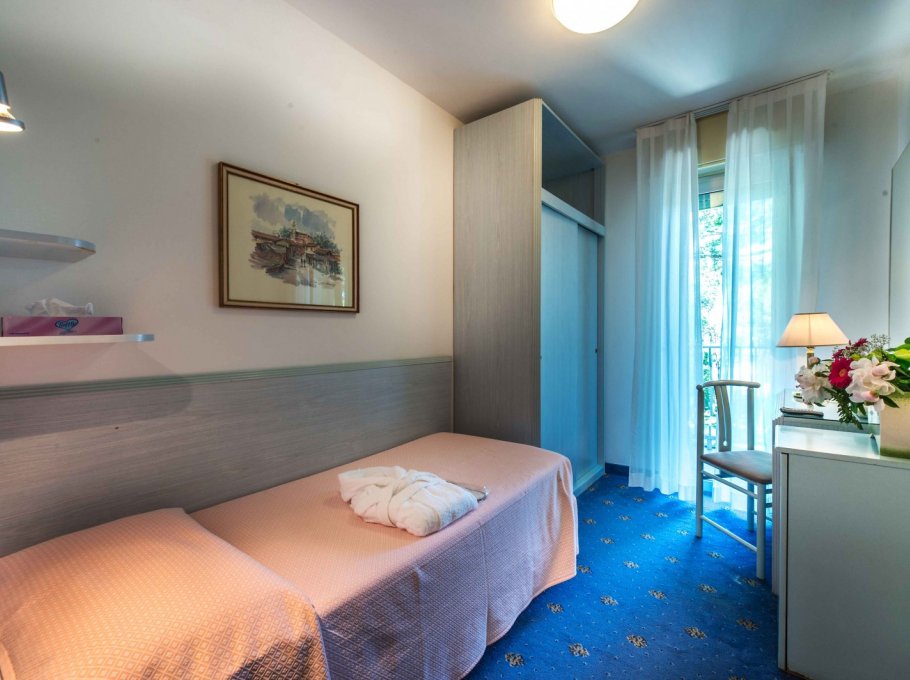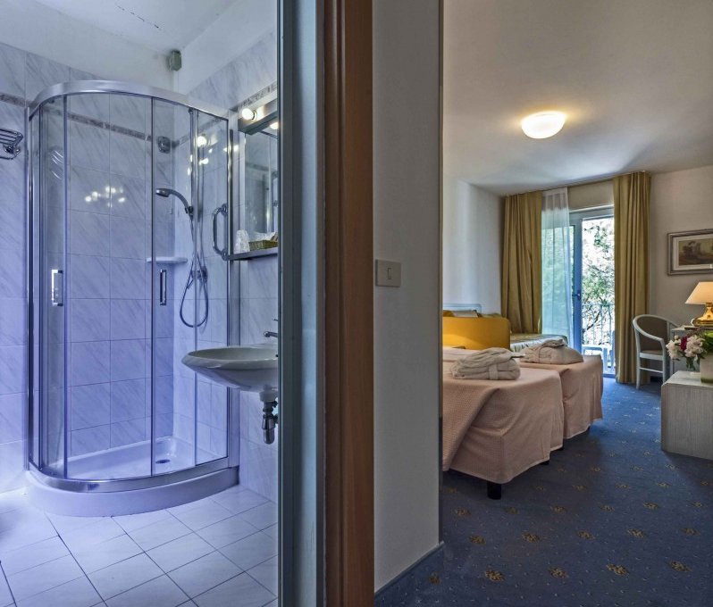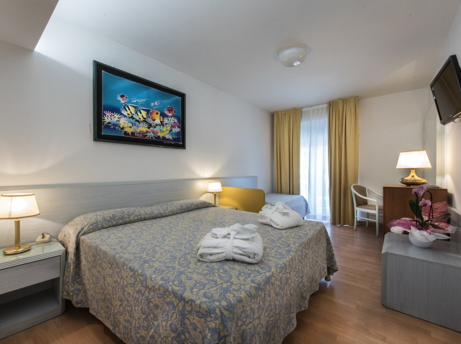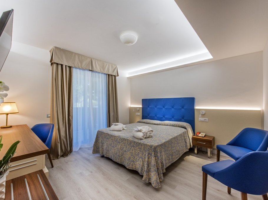 L'albergo è dotato di camere singole, doppie, Suite per famiglie e doppie comunicanti, tutte con terrazza panoramica sulla piscina o sulla pineta, frigobar, aria condizionata, telefono, TV-SAT, e bagno completo di tutti i comfort.