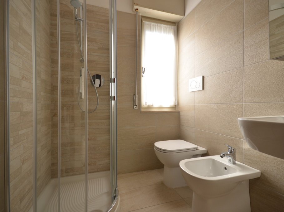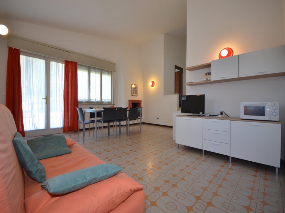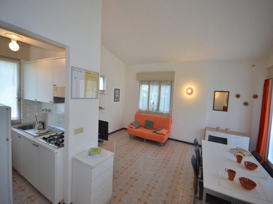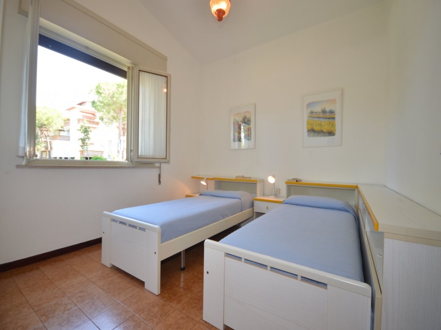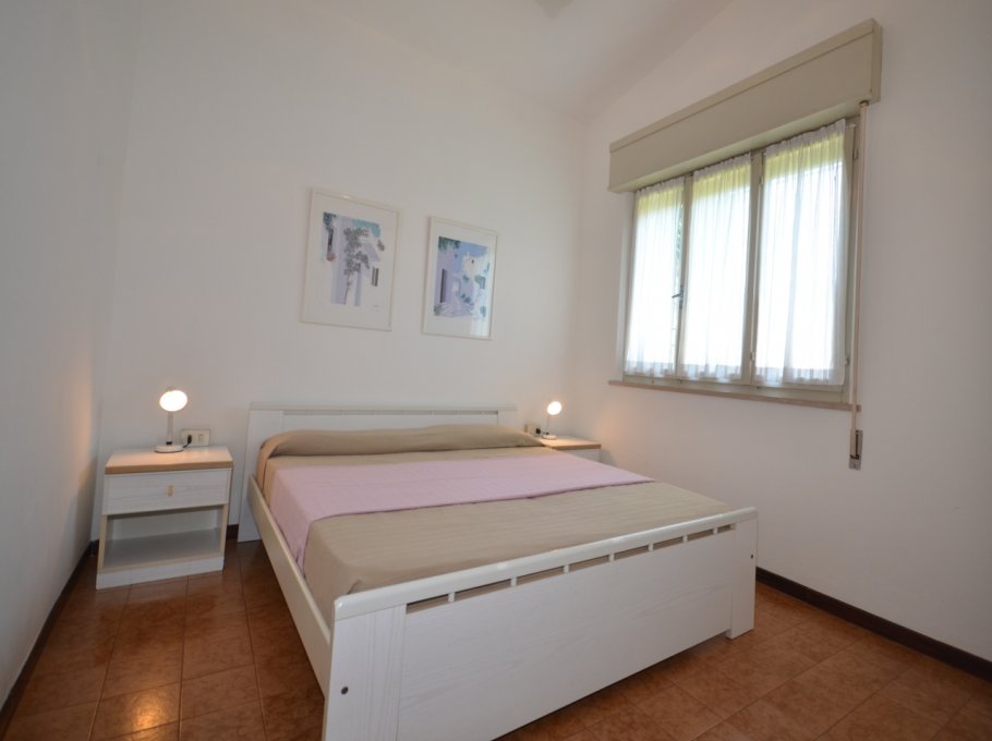 FOUR-ROOM-APARTMENT for 5-7 persons composed of: large living-room with double divan-bed, 1 bedroom with double bed, 1 bedroom with 2 single beds, 1 bedroom with single bed and small balcony, little kitchen, bathroom, garden, barbecue, garage. Air-conditioning. First supply bed linen and towels included.