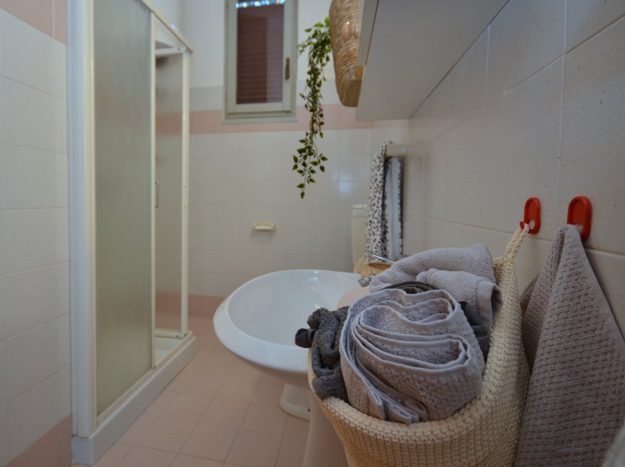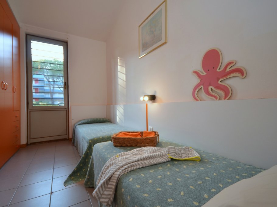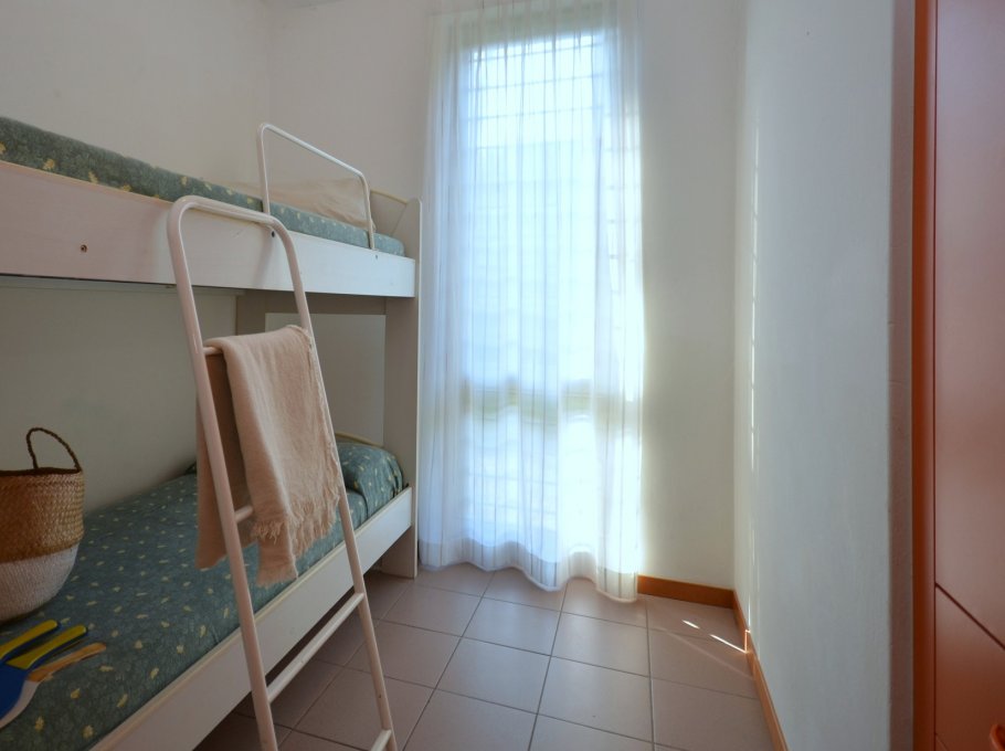 FOUR-ROOM-APARTMENT for 6-8 persons composed of: living-room with double divan-bed, 1 bedroom with double bed, 1 bedroom with bunk bed, 1 bedroom with 2 single beds, kitchen corner, bathroom. Enclosed garden. Air-conditioning.