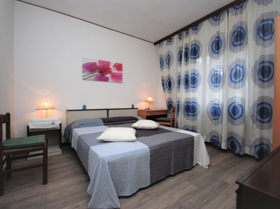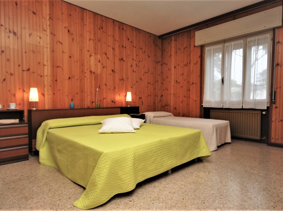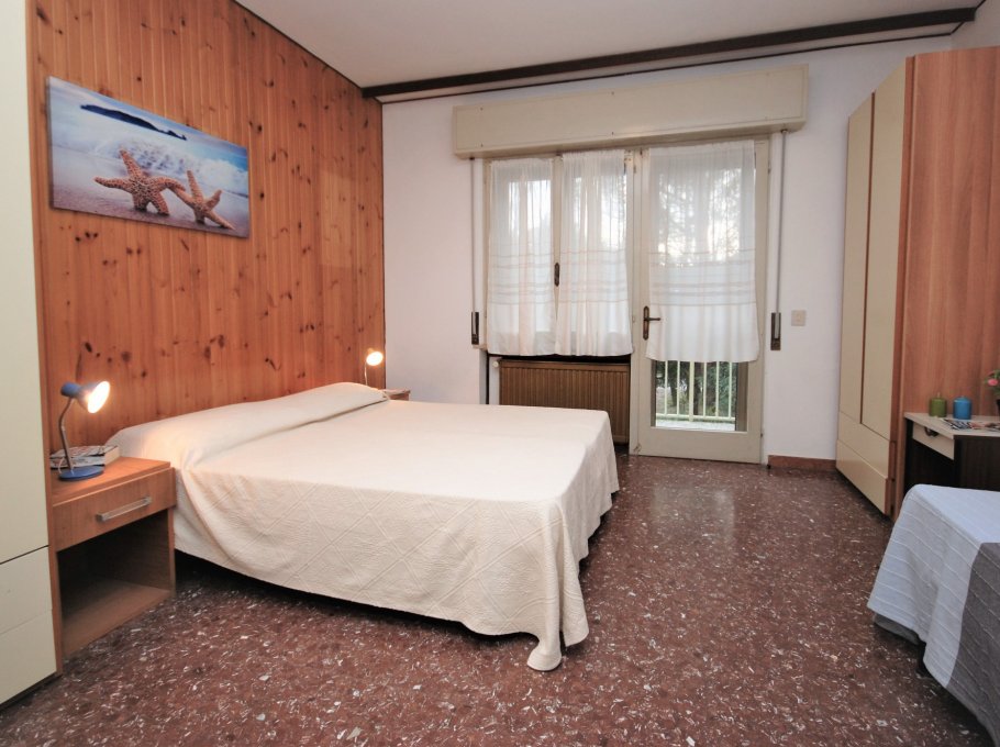 FOUR-ROOM-APARTMENT for 8 persons composed of: living-room, 1 bedroom with double bed, 2 bedrooms with 2 joinable single beds and 1 single bed, kitchen corner, 2 bathrooms, one of which with bathtub, balcony. Garden in common use. Air-conditioning.