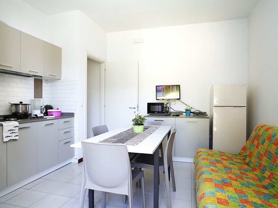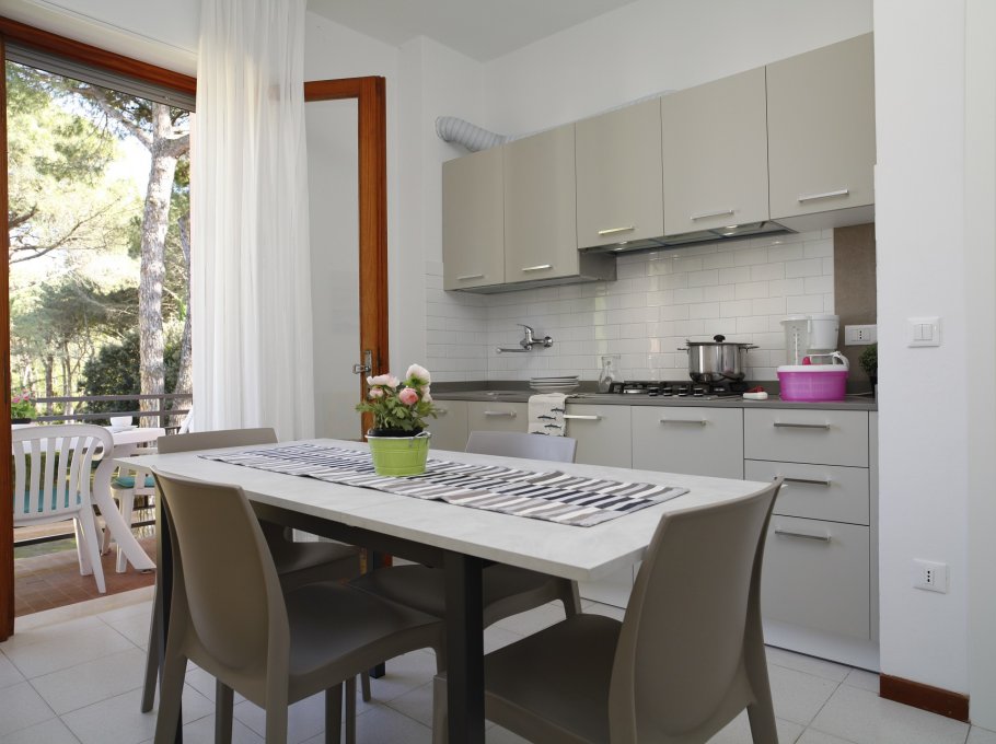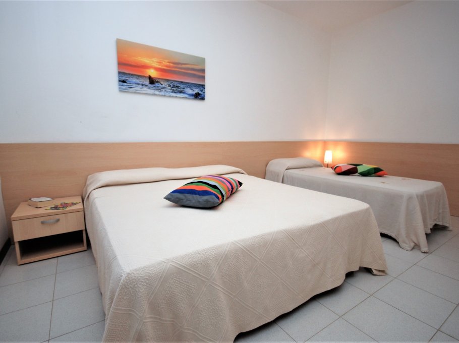 THREE-ROOM-APARTMENT for 5-6 persons composed of: living-room with single divan-bed, 1 bedroom with double bed and single bed, 1 bedroom with bunk-bed, kitchen corner, bathroom, balcony. Garden and barbecue in common use. Air-conditioning.