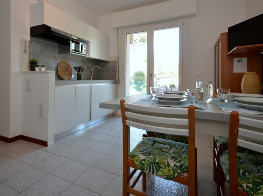 Newly renovated villa, surrounded by a pinewood area, a few steps from shops and services and about 850 meters from the beach. Equipped with: solar panels, swimming pool with sun beds, umbrellas, table with chairs and shower with hot water. Large numbered outdoor parking spaces, dedicated area for barbecue, bicycle rack. Possibility of charging electric cars, by reservation, at the market cost of electricity. Apartments of different types, modernly furnished, with: new double glazed windows, bathroom with shower, terrace table and chairs, satellite TV, Wi-Fi, washing machine, microwave oven, American coffee machines and safe. Swimming pool open with Covid protocol from early June to mid-September.