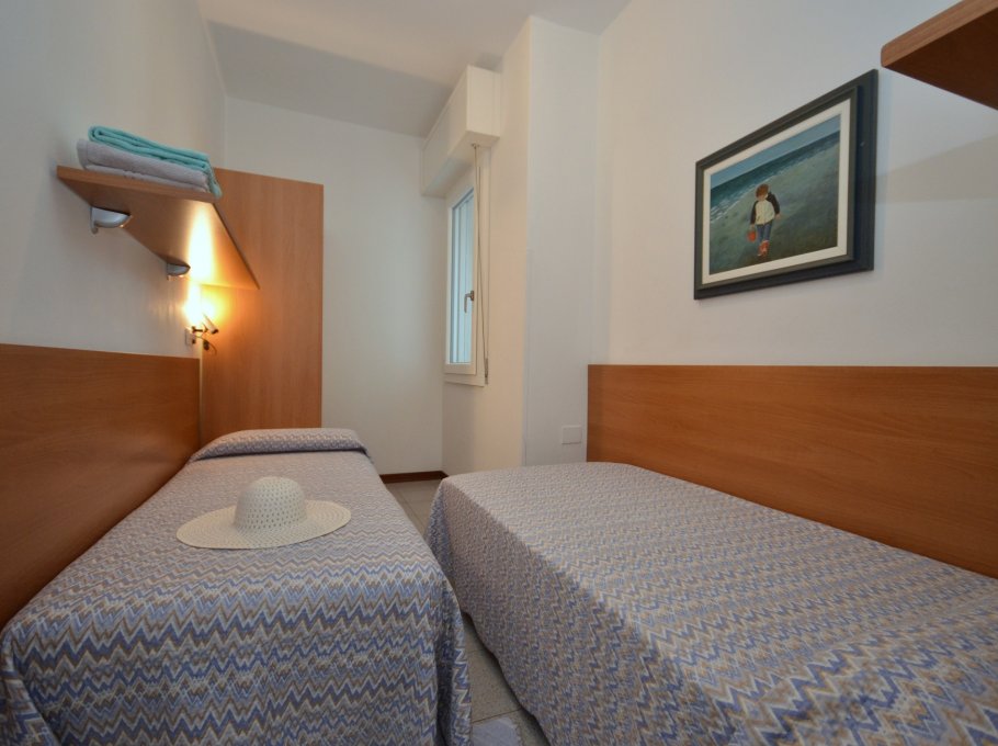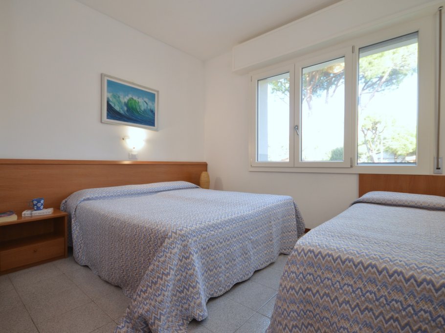 THREE-ROOM-APARTMENT for 5-6 persons composed of: living-room with single divan-bed, 1 bedroom with double bed and single bed, 1 bedroom with 2 single beds, kitchen corner, washing-machine, bathroom, balcony.