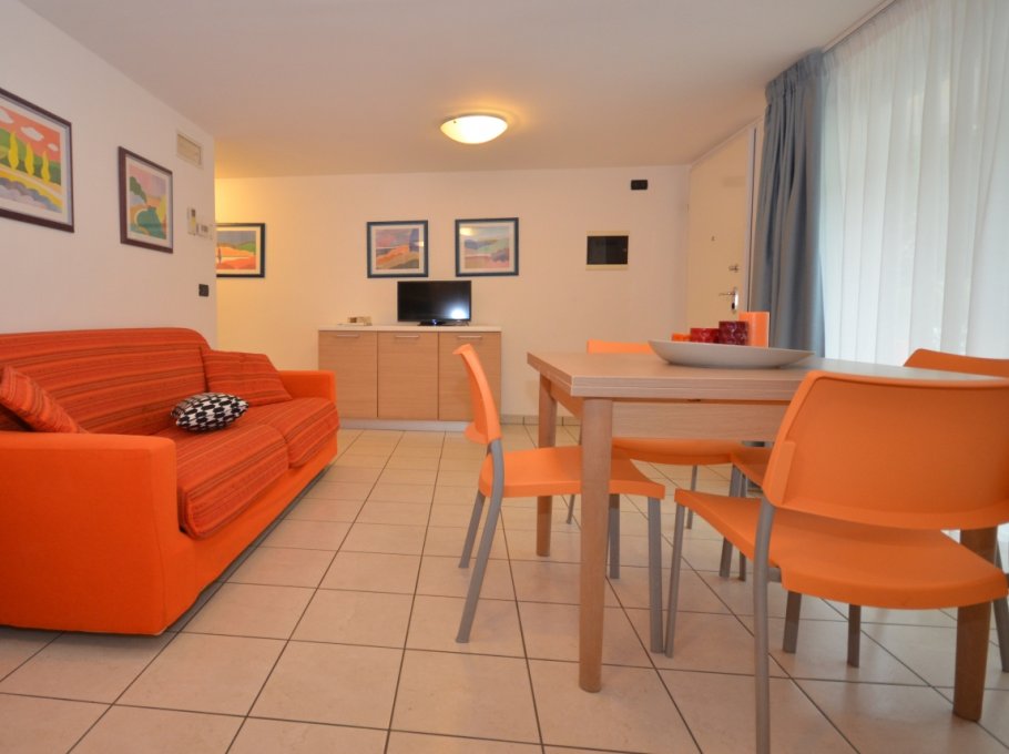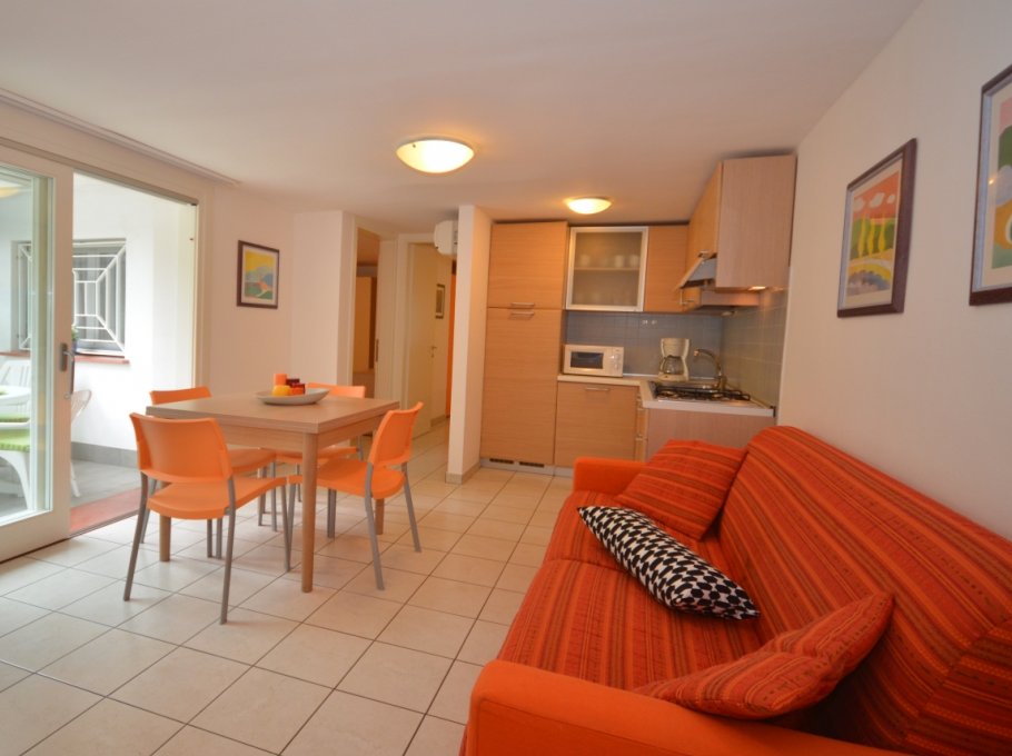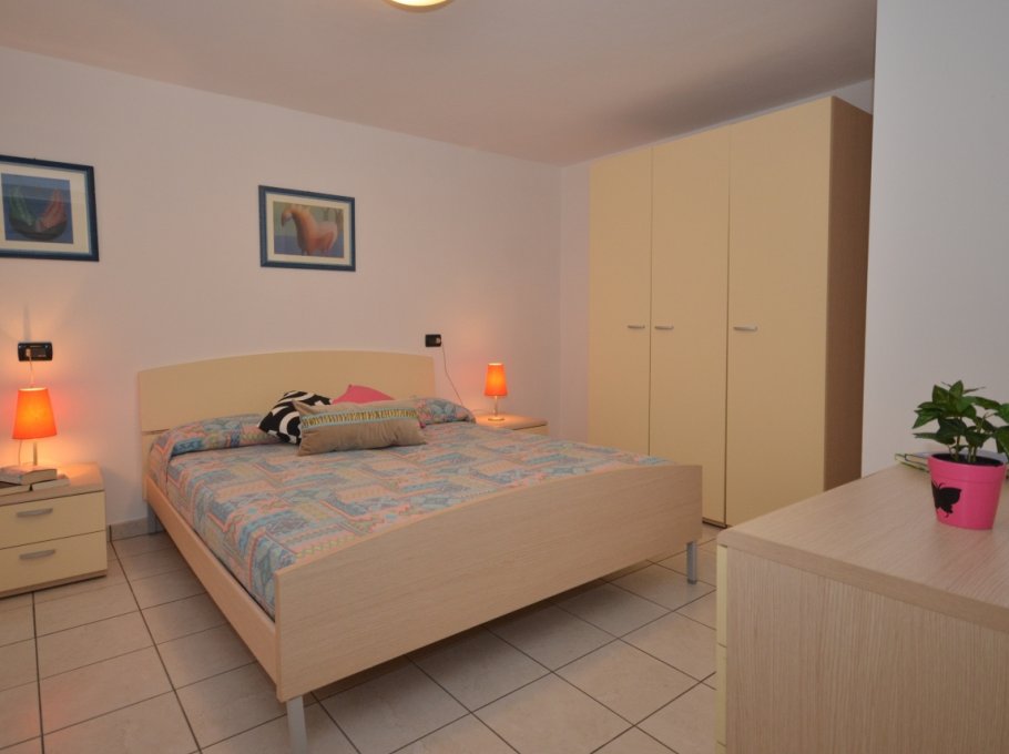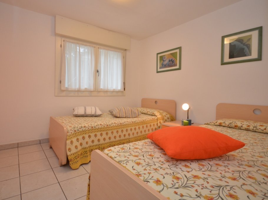 THREE-ROOM-APARTMENT for 4-6 persons, on the gound floor, composed of: living-room with double divan-bed, 1 bedroom with double bed, 1 bedroom with 2 single beds, kitchen corner, free washing-machine in common use, bathroom.