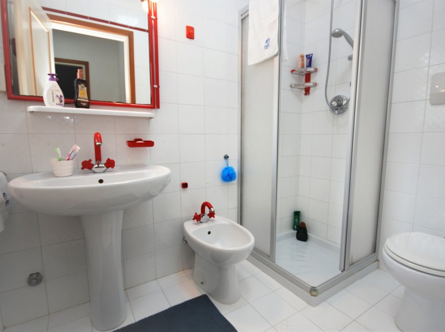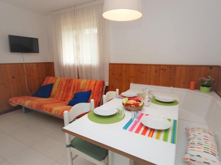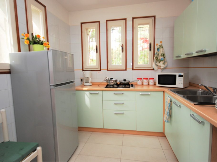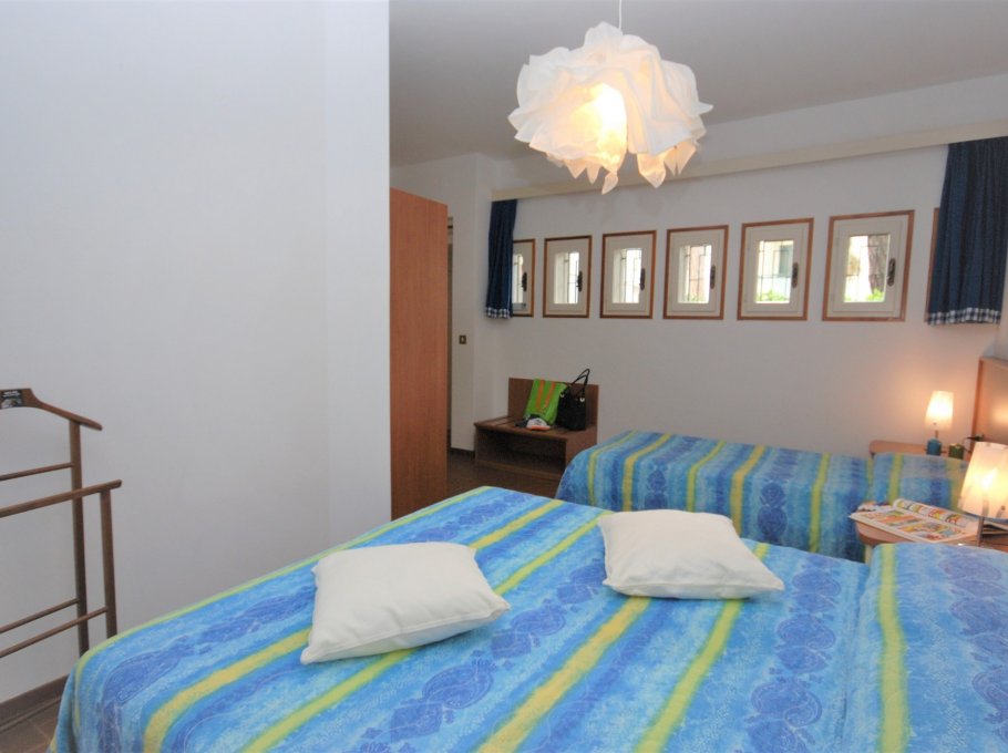 THREE-ROOM-APARTMENT for 5-7 persons composed of: living-room with double divan-bed, 1 bedroom with double bed, 1 bedroom with 3 single beds, kitchen corner, bathroom, small garden. Air-conditioning.