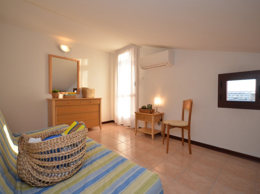 FOUR-ROOM-APARTMENT for 6 persons, on 2 LEVELS, composed of: living-room, 1 bedroom with double bed, 1 bedroom with bunk-bed, kitchen corner, washing-machine, dish-washer, bathroom, balcony, on the LOWER FLOOR. Mansard-room with double divan-bed, bathroom, solarium on the HIGHER FLOOR. Air-conditioning.