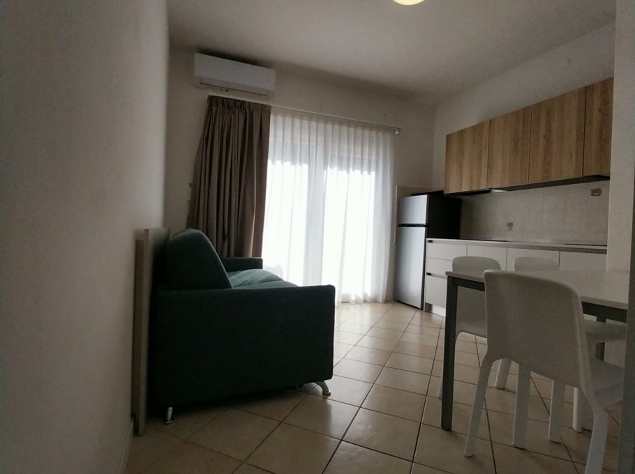 Two-room flat in three-storey building. It has a living/dining room with small kitchenette corner, sofa bed for 2 persons and balcony. Double bedroom, bathroom with shower cabin and window. One parking space included. Max 4 sleeping places. Pets not allowed.