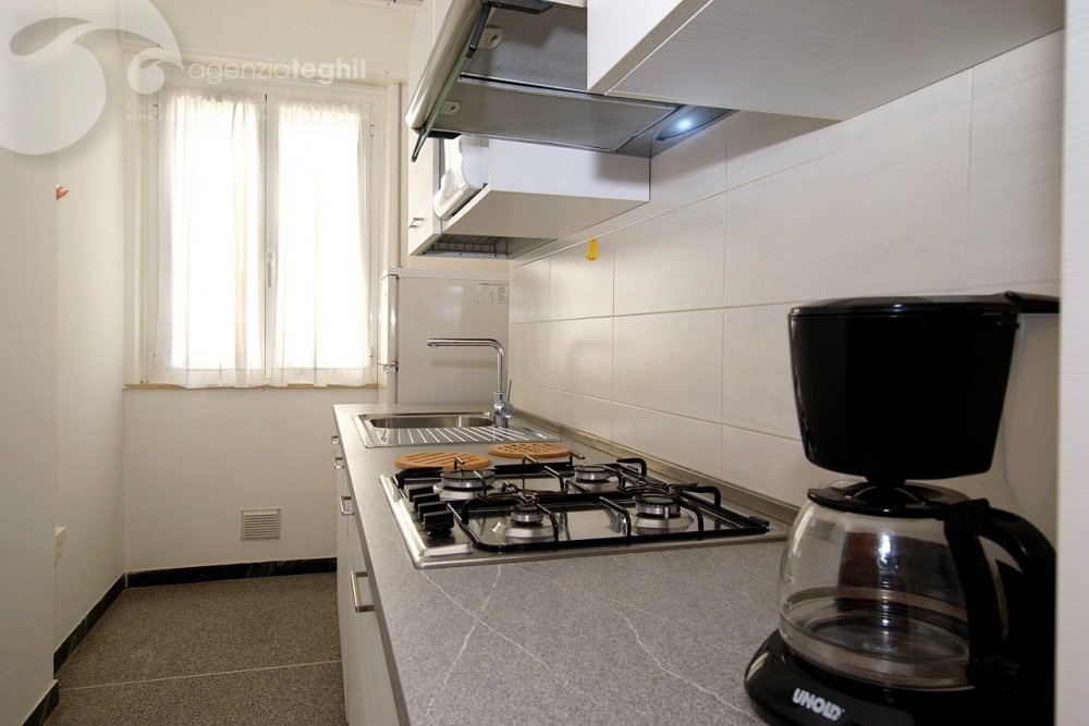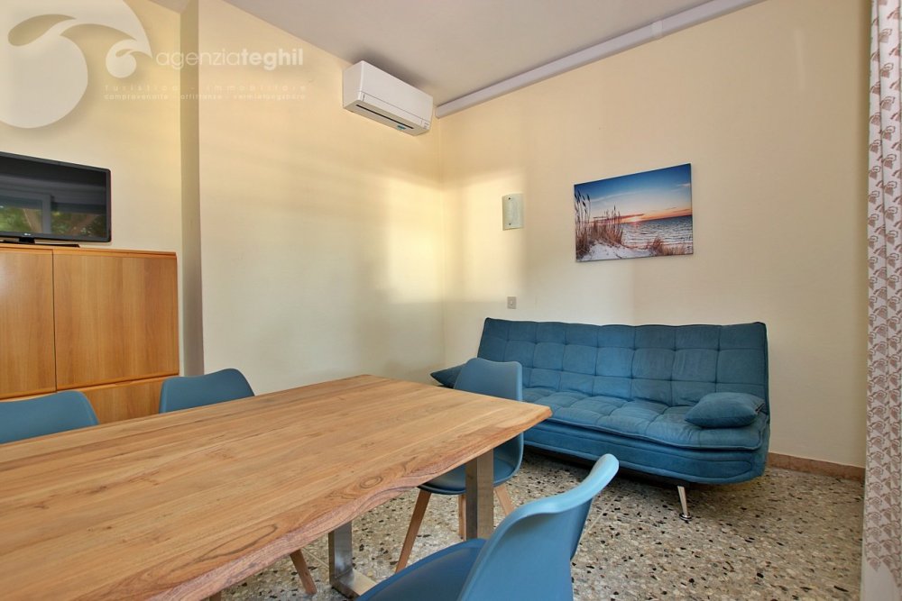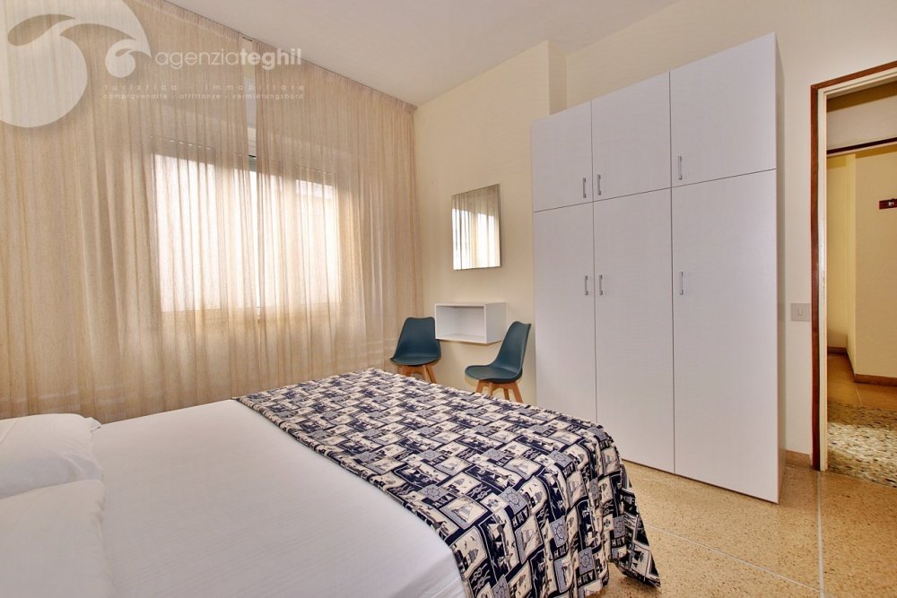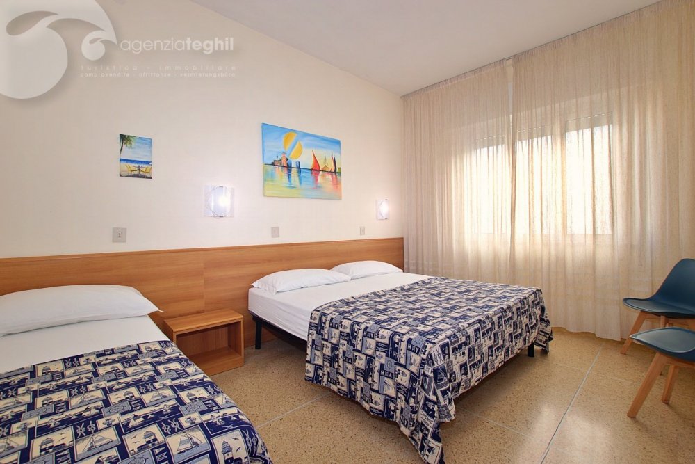 Type C - 5/6 people: Spacious apartment on the 3rd floor (no elevator) featuring a triple bedroom, a double bedroom, a bathroom with a window and a bathtub, a living room with a single sofa bed, and a terrace overlooking the seafront/beach, furnished with a table and chairs. Separate kitchen with a 240-liter double-door refrigerator, microwave, and dishwasher.