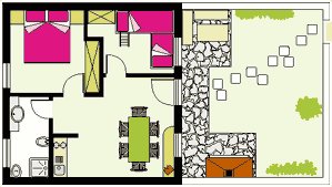 The bungalows "basic " have a simple, basic but functional style, the bungalow " classic " modern and functional style while the bungalows " classic plus " have a living room with a large sliding window overlooking the garden. The furnishing is modern and functional , and additionally in the living room , there is a comfortable sofa.