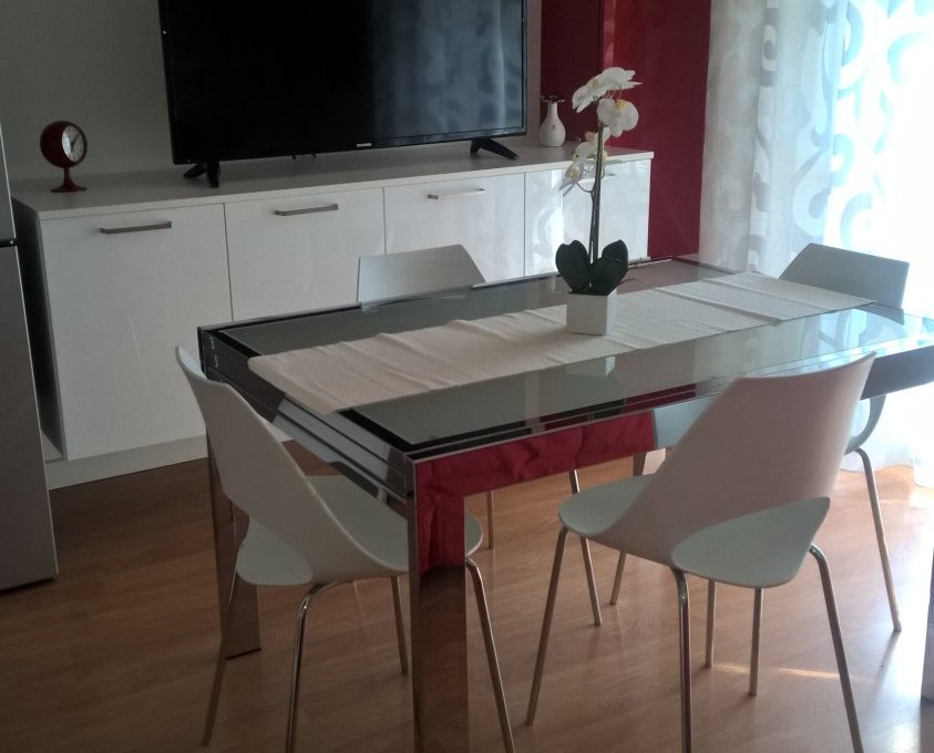 Bilocale sito al 3°piano con ascensore composto da una camera matrimoniale, soggiorno con angolo cottura e divano letto doppio, TV, sia in camera che in soggiorno, forno, lavastoviglie, miucroonde, aria condizionata, in entrambi gli ambienti, bagno con box-doccia, scaiugacapelli, cassaforte, terrazzo vivibile, posto auto.