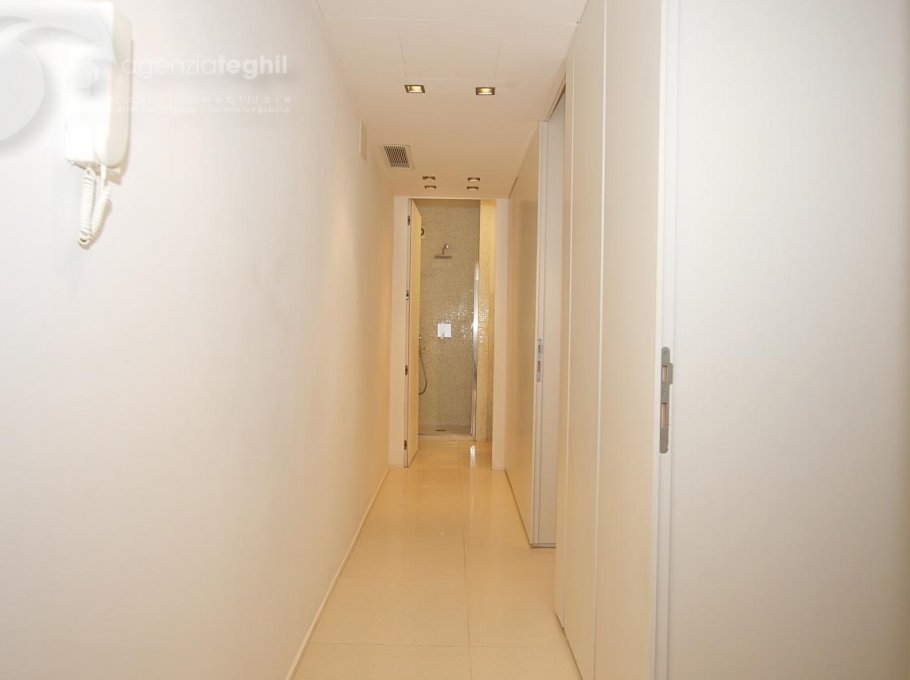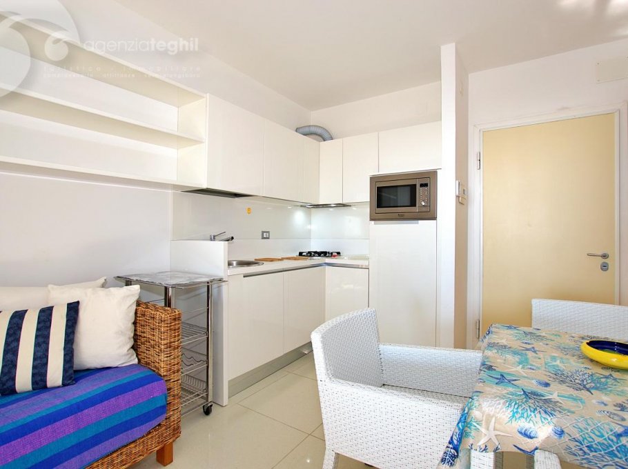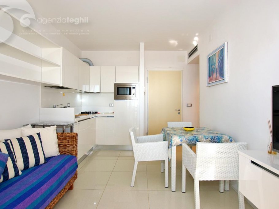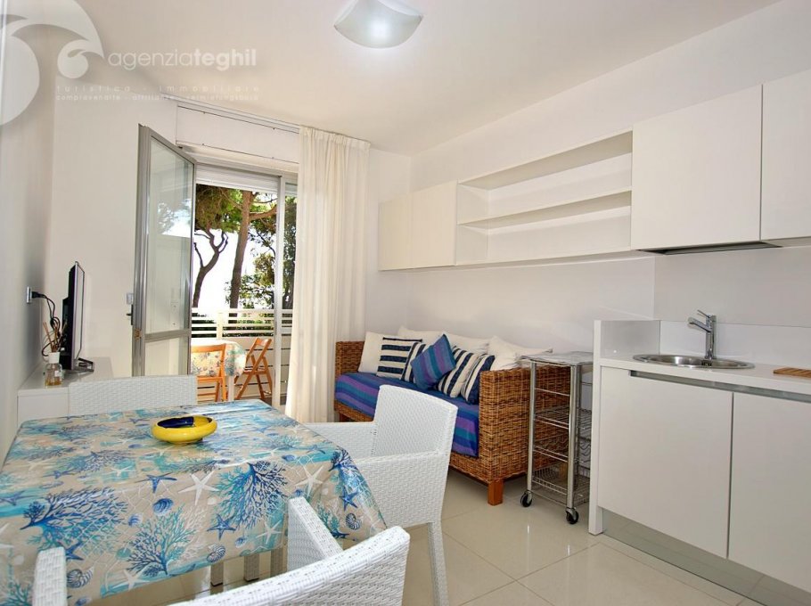 Just the beach between you and the sea. The four-floor residence house is connected with the beach without street crossings. Lifts. 200 m away from the pedestrian area of Via Udine, overlooking the the quiet promenade Marin. Equipped with lifts and a supermarket food.