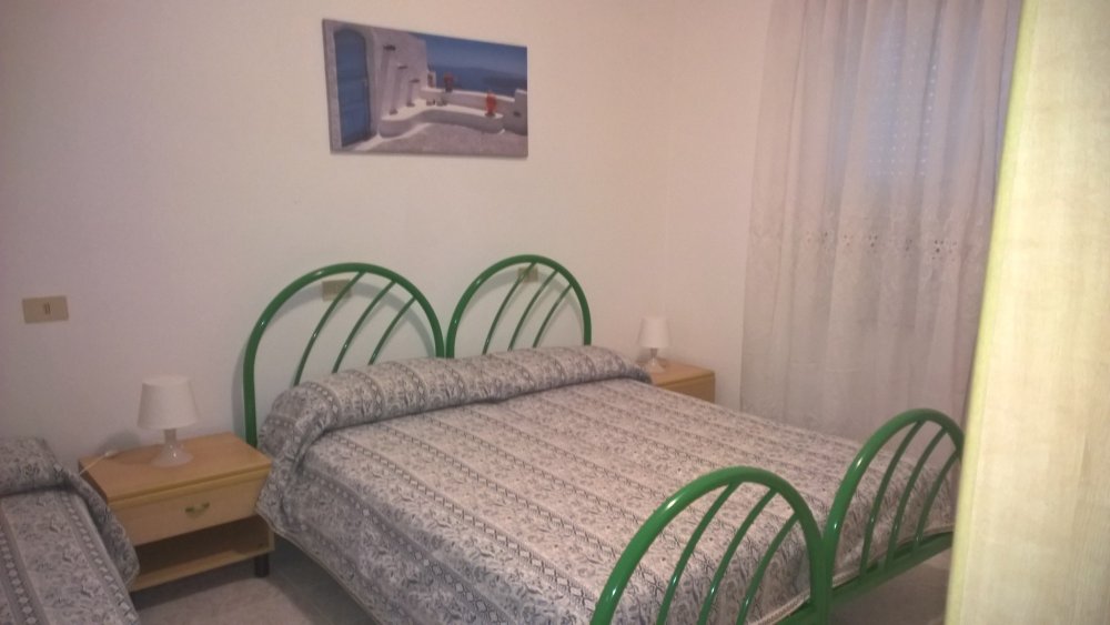 una camera da letto(matrimoniale + un letto singolo)soggiorno con angolo cottura e divano letto, TV,forno a microonde, aria condizionata,bagno finestrato con box-doccia, terrazzo, posto auto coperto.