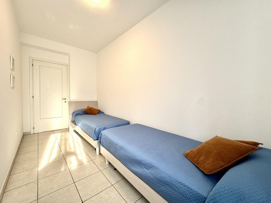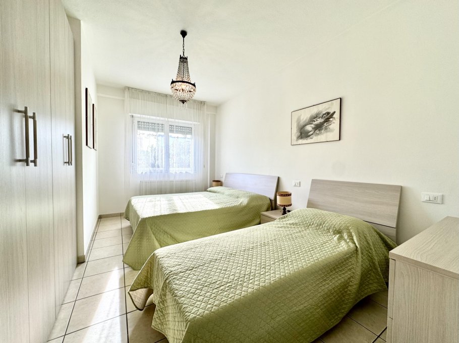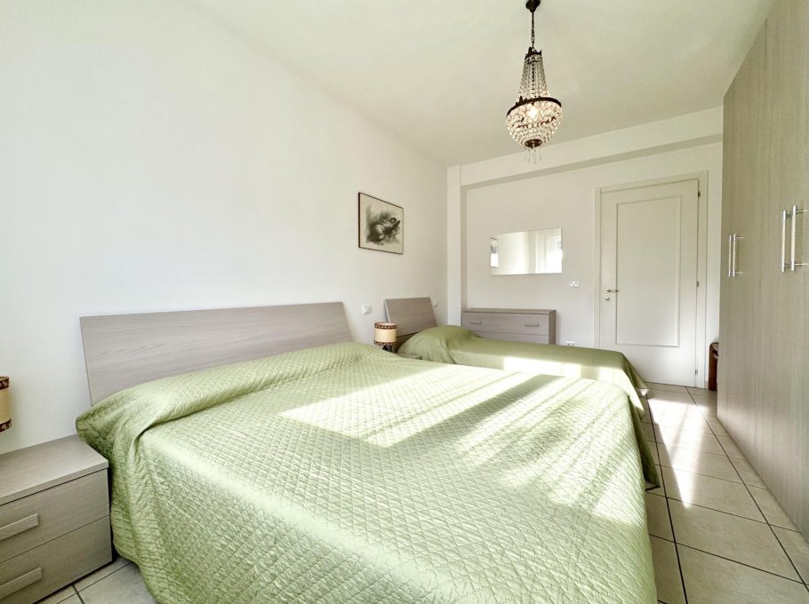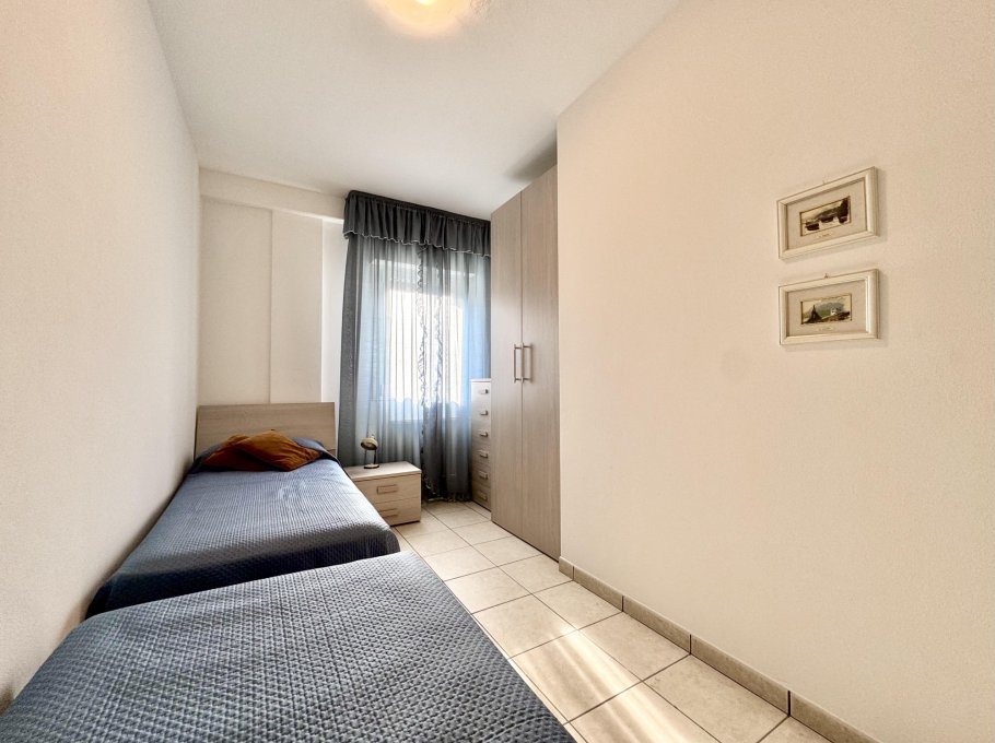 Large and comfortable apartment located on the first floor consists of a bedroom with double bed and single bed, a bedroom with two single beds, living room with sofa bed and kitchenette-corner, bathroom with shower, large terrace, reserved parking space. With air conditioning and wasching-machine.