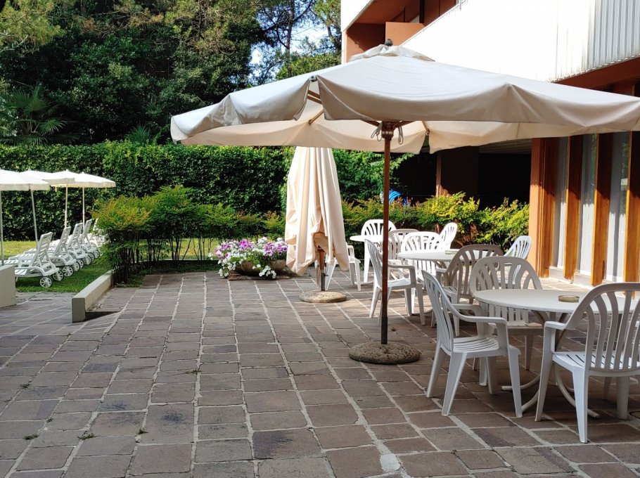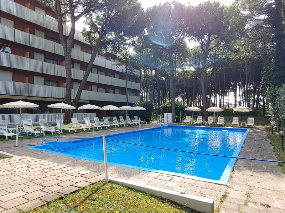 Eurotel app. 120 Studio ( one room appartament) with terrace in a residence with swimming pool, located in a quiet area surrounded by greenery, has a double bed and single bed, air conditioning ( to be paid extra € 20.00 per week), TV, small fridge with mini freezer,washing machine, parking space not numbered subject to availability in the condominium parking area. Condominium caretaker.