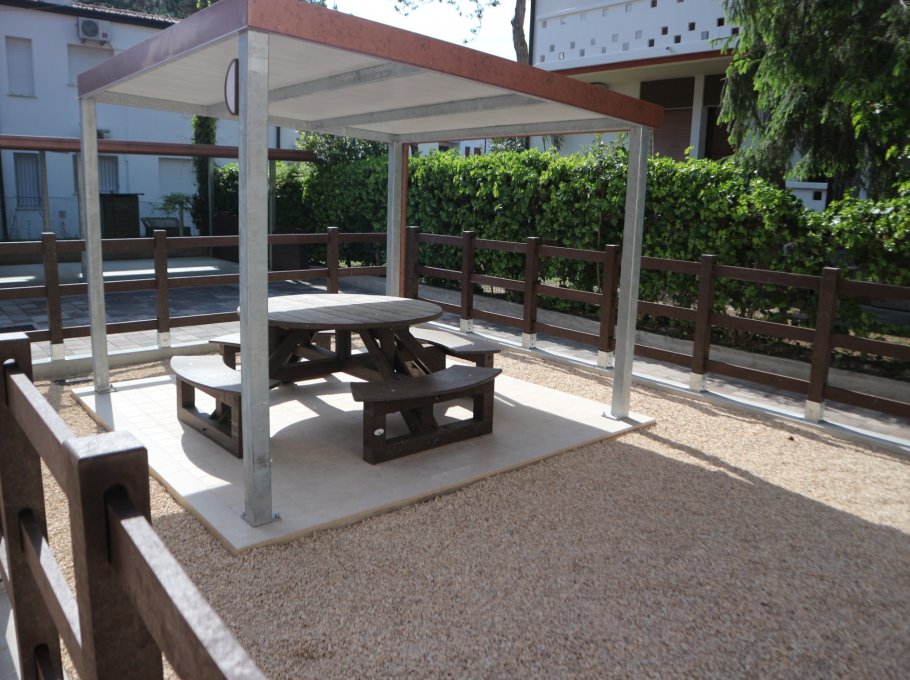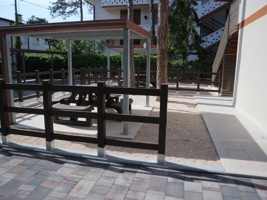 Tato elegantni budova se zahradou se nachází v jedné z nejkrásnějších oblastí Lignano Pineta, jen pár kroků od moře. Jeji šťastná poloha vede k tomu, že zajimà hlavně ty, kteří chtějí strávit klidnou dovolenou, aniž by se proto museli vzdát komfortu ktery nabízí centrum města. Každý apartmán má očíslované parkovací místo kryté střechou uvnitř zahrady.