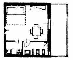 1-room-apartment with double divan bed, cooking area, bathroom, balcony.
