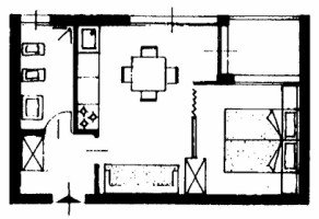 Apartment with 1 doubleroom , double divan bed in the living room, cooking area, bathroom, little balcony.