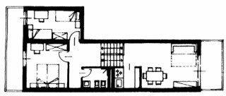 Apartment with 2 sleepingrooms (one with double-bed and one with 2 beds), living-room with double divan bed and cooking area, 2 bathrooms, 2 balconies, inside stairs.