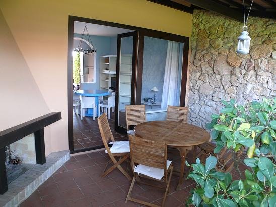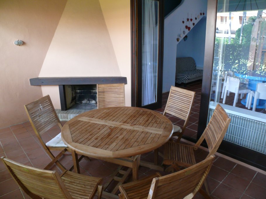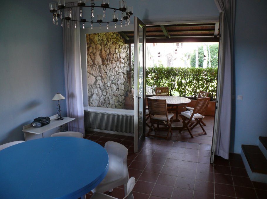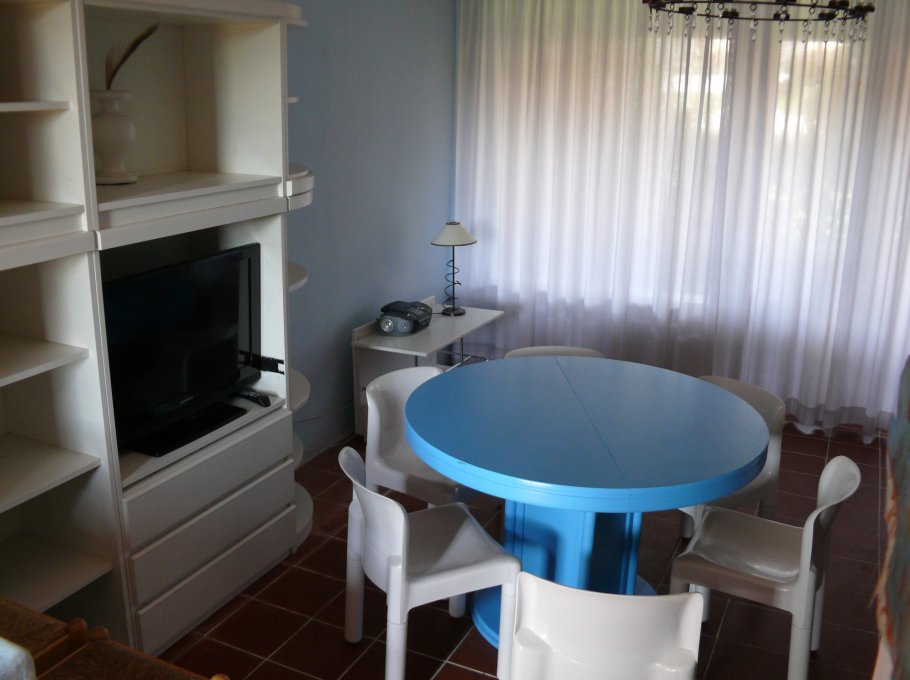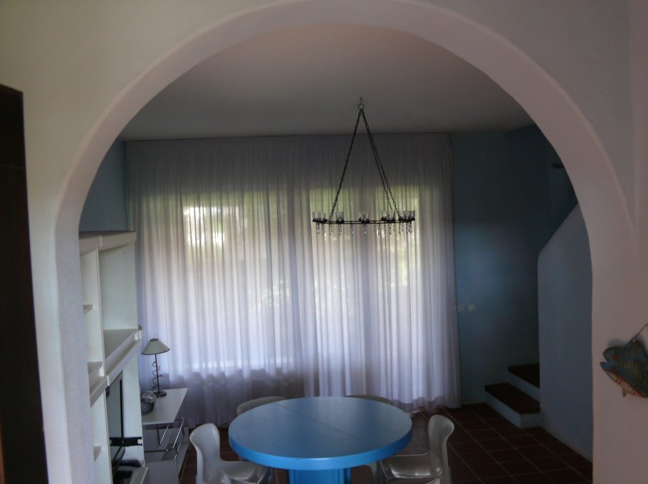 Exclusive residence with swimming pool, park place and porter. About 800 meters from the beach. Villa with two floors composed by: outside patio with little private garden, wide living room, kitchenette with microwave, store room. The first floor is composed by a double bedroom, a bed room with bunk bed plus pull-out bed with balcony. On the first floor also a bathroom with shower cabin and window. Numbered park place. Washing machine and air conditiong.