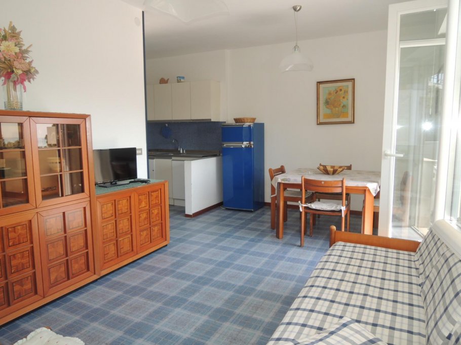 Apartment in front of the sea, by the beach "Ausonia" and Lido del Sole "; it is roomy and very bright, on the 2nd floor with a nice terrace equipped to eat outside and see the sea, composed by two bedrooms (one with double bed and one with two single bed), living-room with double sofa bed, kitchenette, bathroom; is equipped with washing machine, air conditioning, TV and garage.