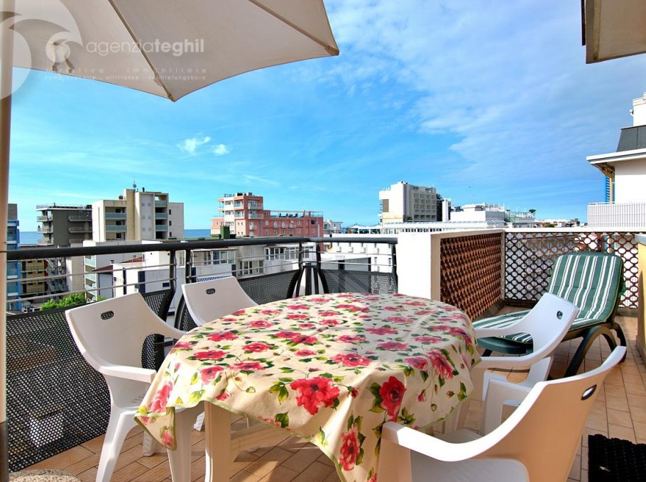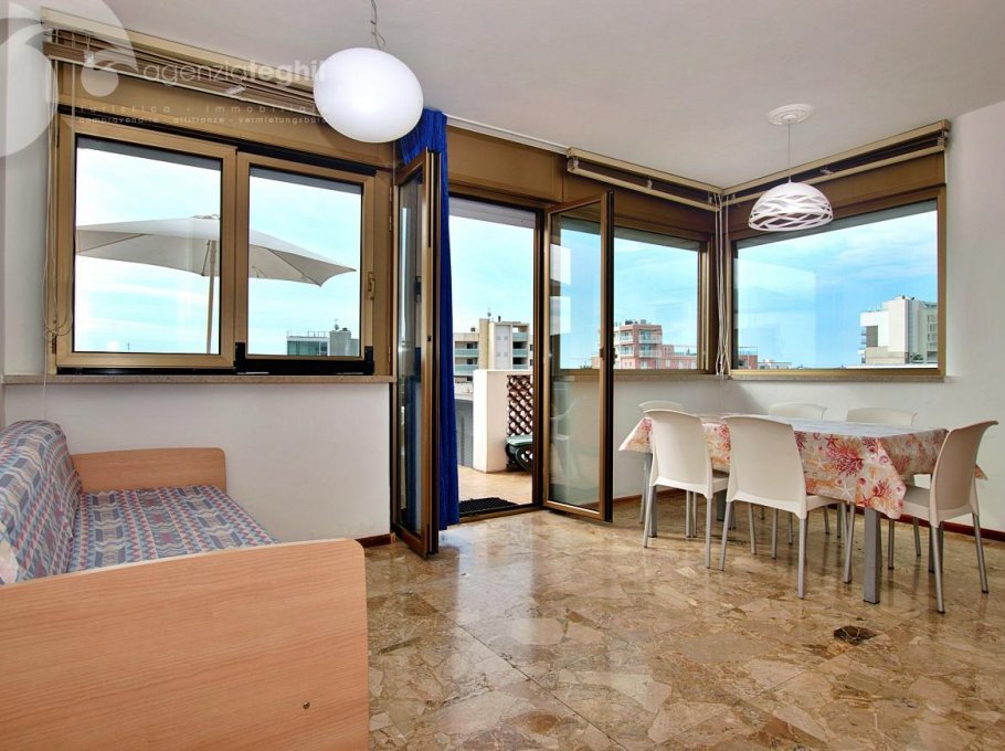 Six-story residence in a quiet yet central location. Elevator available (some steps required). 150 meters from the beach and 100 meters from the pedestrian area of Via Udine.
