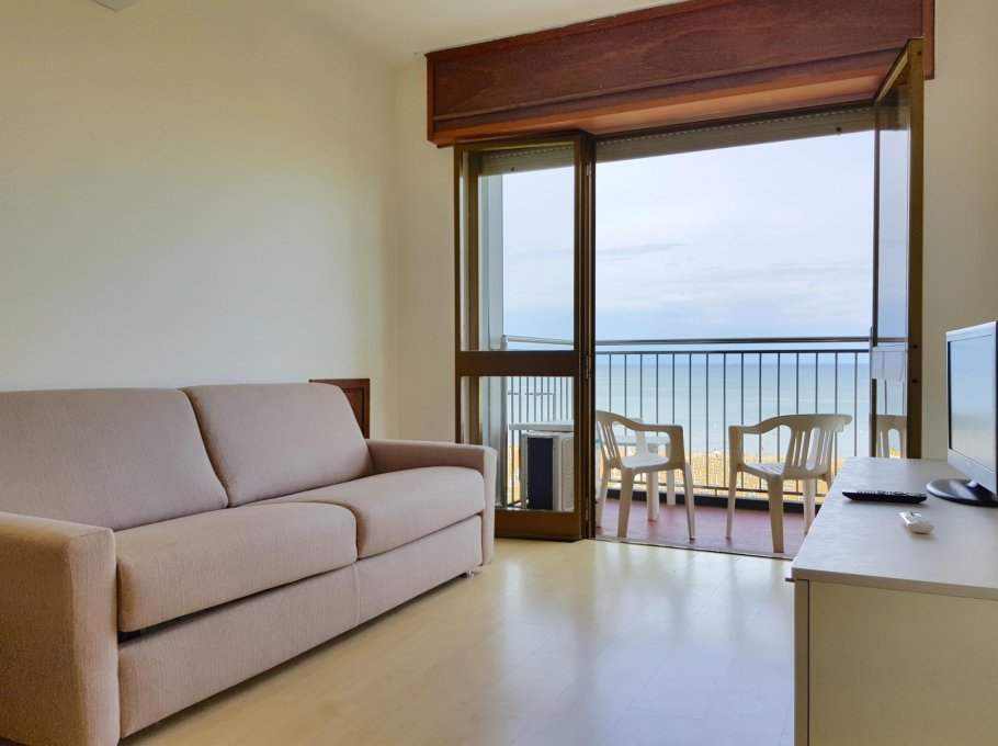 Elegant and modern studio apartment located on the sixth floor facing the sea with living room with sofa bed and single bed, kitchenette, bathroom with shower, balcony facing the sea. With air conditioning. CIN CODE: IT030049C23584NOY9