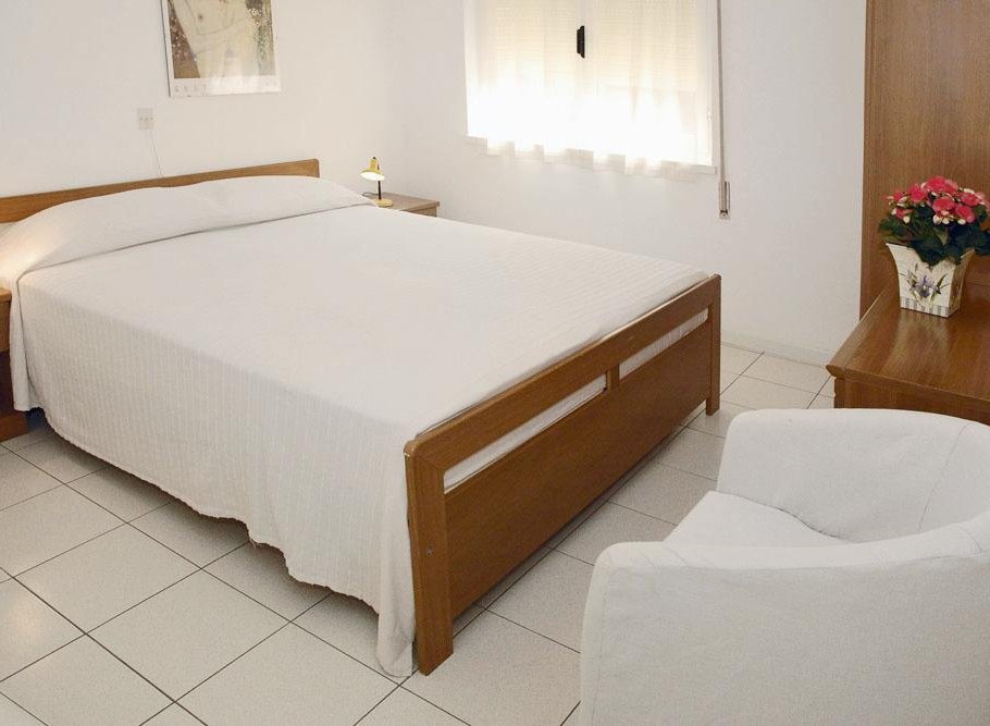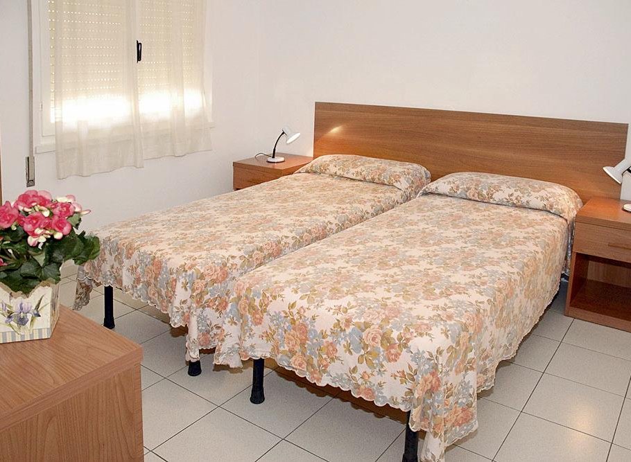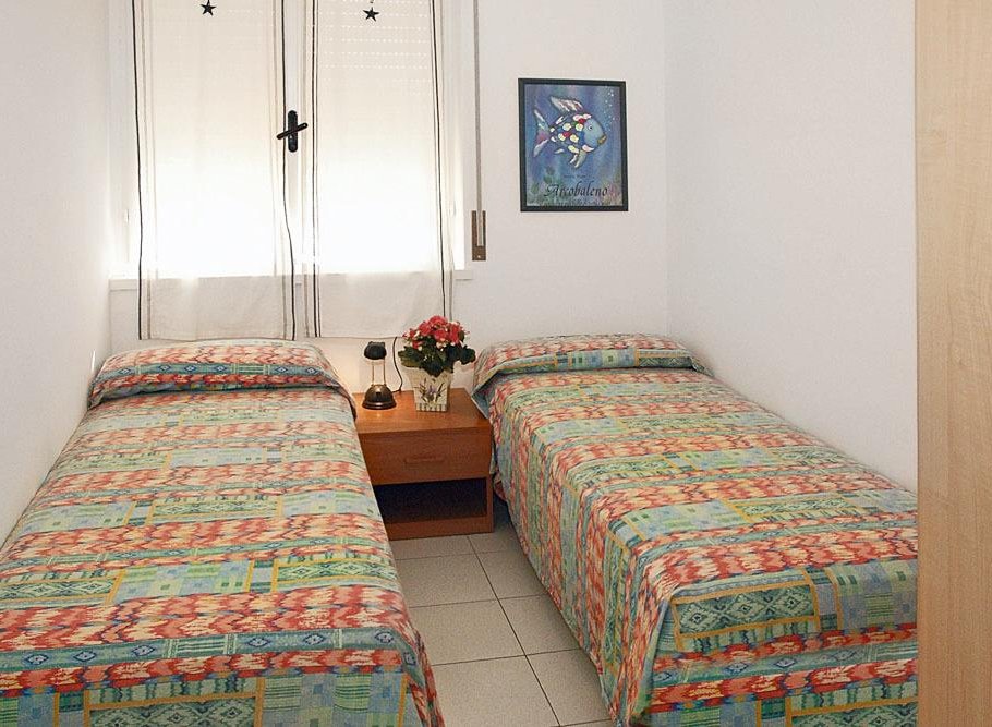 Type D / 1: 7 persons - Apartment on the 2nd floor (no elevator) consists of a double bedroom, two bedrooms with two beds, one single bedroom, windowed bathroom with shower box. Living room with television with satellite connection and wide balcony with table and chairs and awning. Kitchenette with refrigerator from 240 lt. (separated freezer) and microwave.