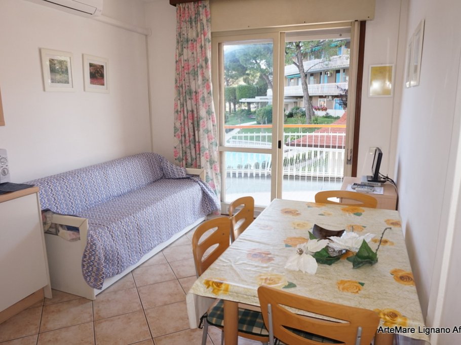 The residence is located in a quiet area, a short walk from the beach and essential shops such as supermarkets, newsagents, tobacconists, bars, ice cream parlours, pizzerias and restaurants. It is also about 500 metres from “Viale Centrale”, which leads to the beautiful pedestrian boulevard in the centre of Lignano Sabbiadoro in just a few minutes.