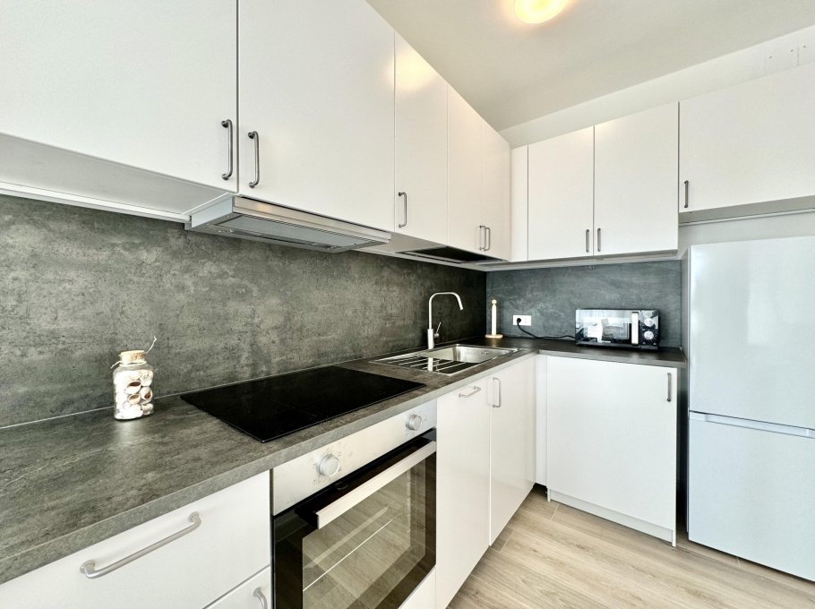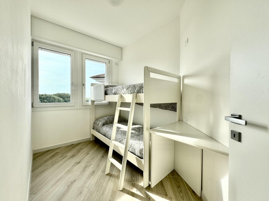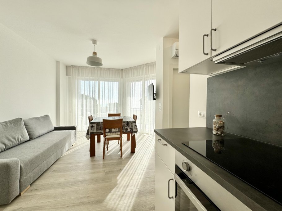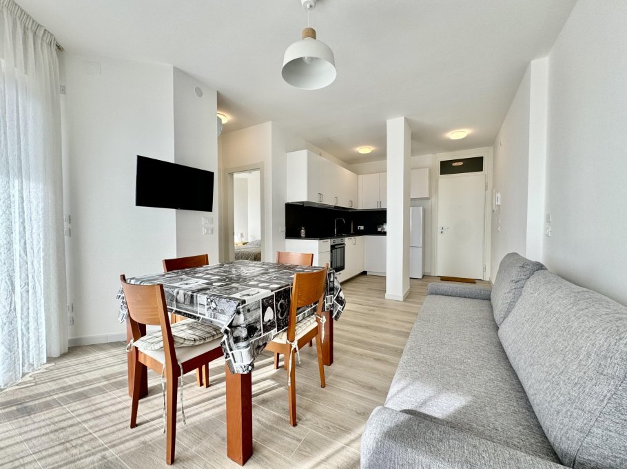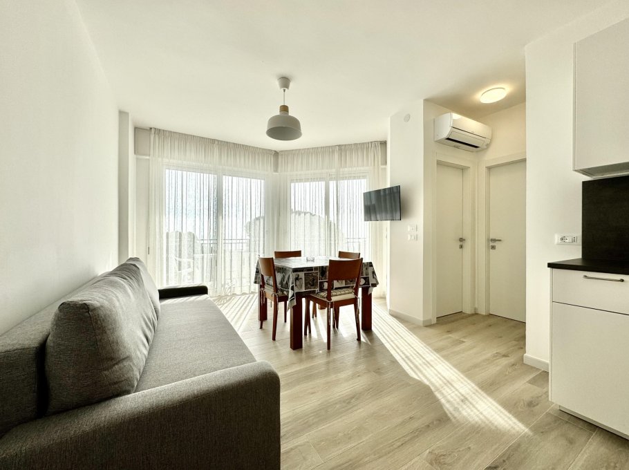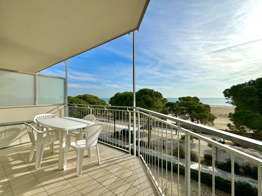 Renovated seafront apartment located on the third floor composed of a living room with sofa bed, separate kitchenette, terrace facing the sea, bedroom with double bed, bedroom with bunk bed, small side terrace, bathroom with shower. With air conditioning, washing machine and dishwasher.