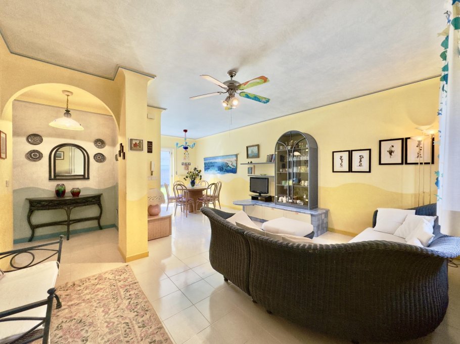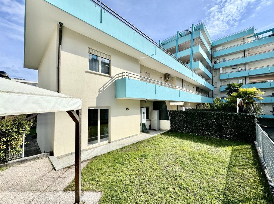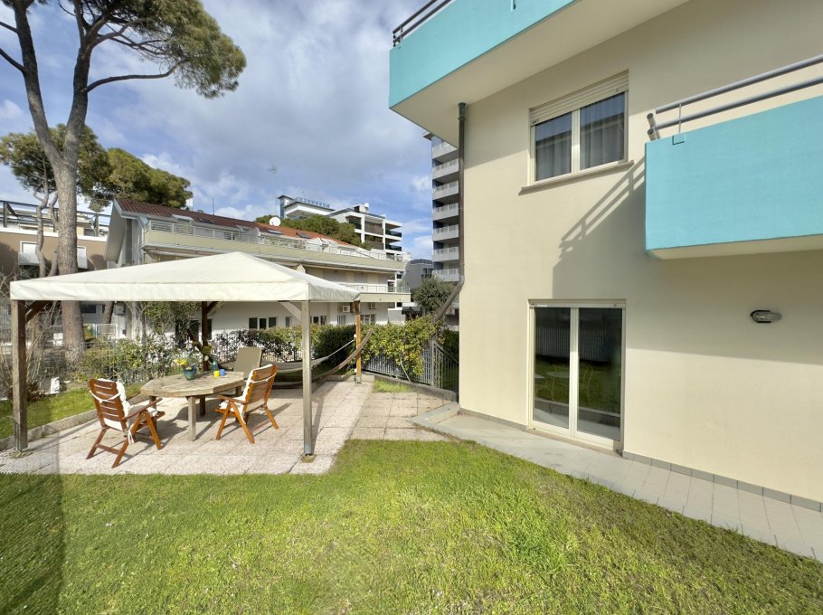 Head terraced house in a condominium context located in a very central position, closed to the pedestrian area of Sabbiadoro and 50 metres from the beach. Equipped with wide parking space, garden and terraces.