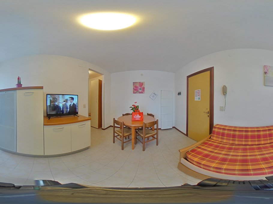 Apartmán typu Bilo se skládá z obývacího pokoje s kuchynským koutem a rozkládacím dvojlužkem, TV, mikrovlnna trouba, ložnice se tremi lužky (manželská postel a samostatné lužko), koupelny se sprchovym koutem/bidetem/WC a balkónu vybaveného stolkem a zidlemi. Parkovací místo na "Junior parking" v pesì vzdálenosti od rezidence. Cena zahrnuje klimatizaci a zaverecny uklid. V ubytovacím rádu agentury jsou specifikovány všechny výše uvedené služby.