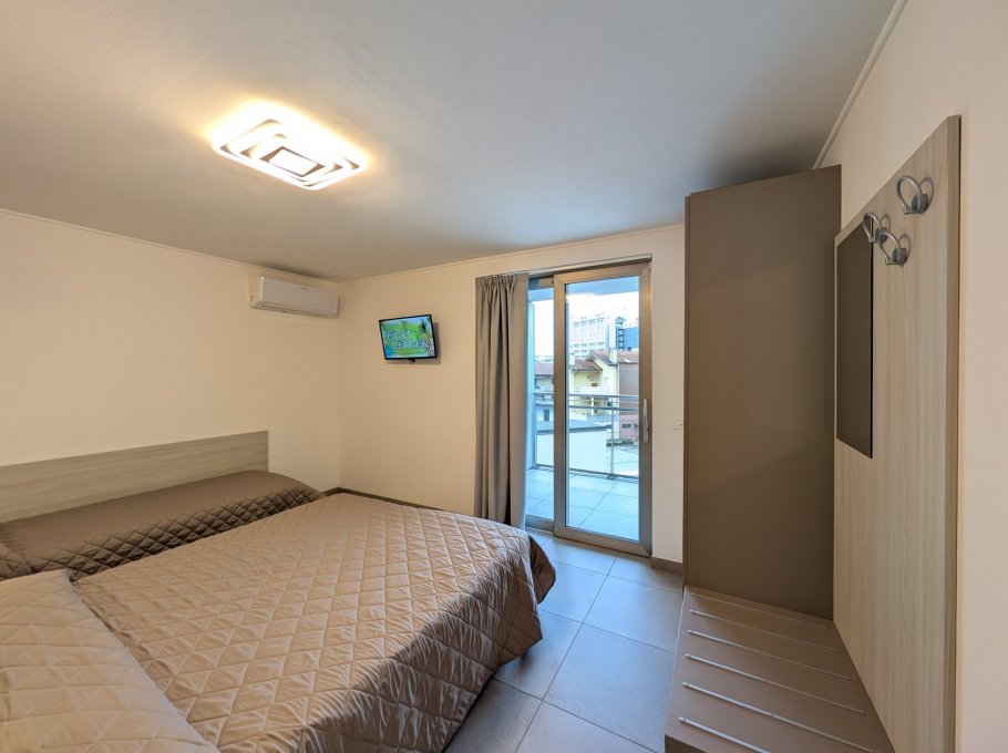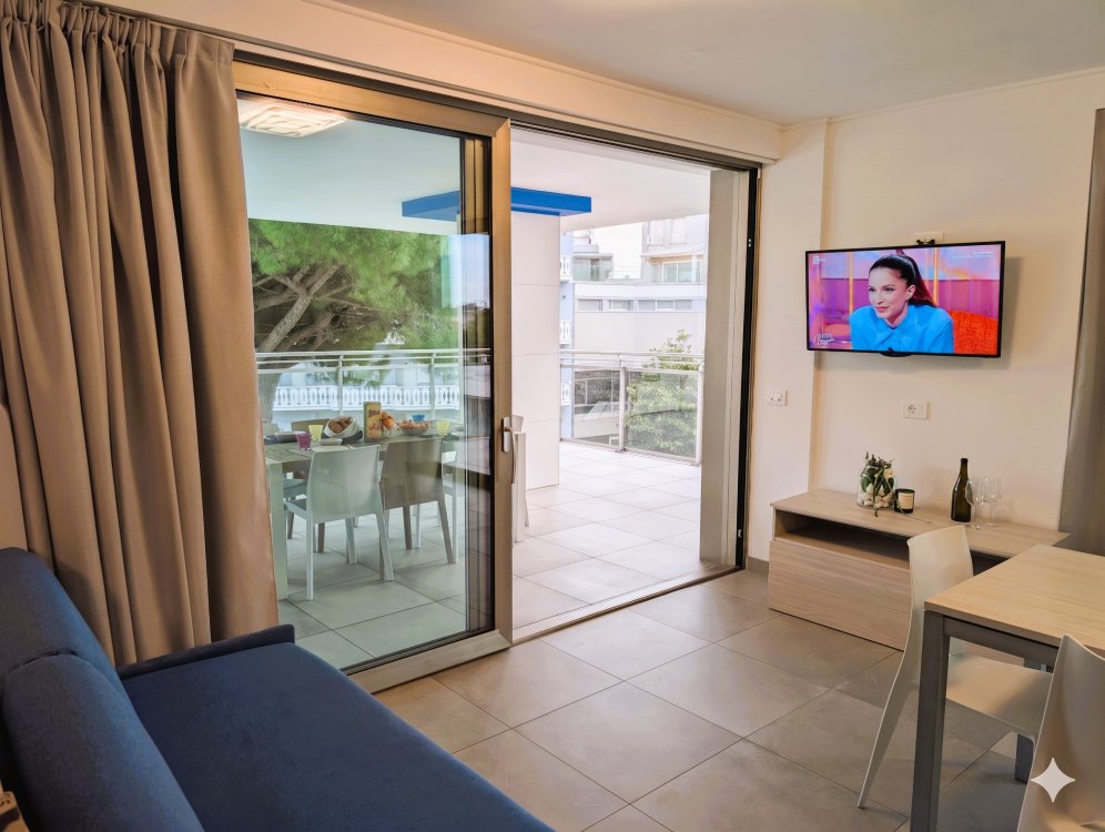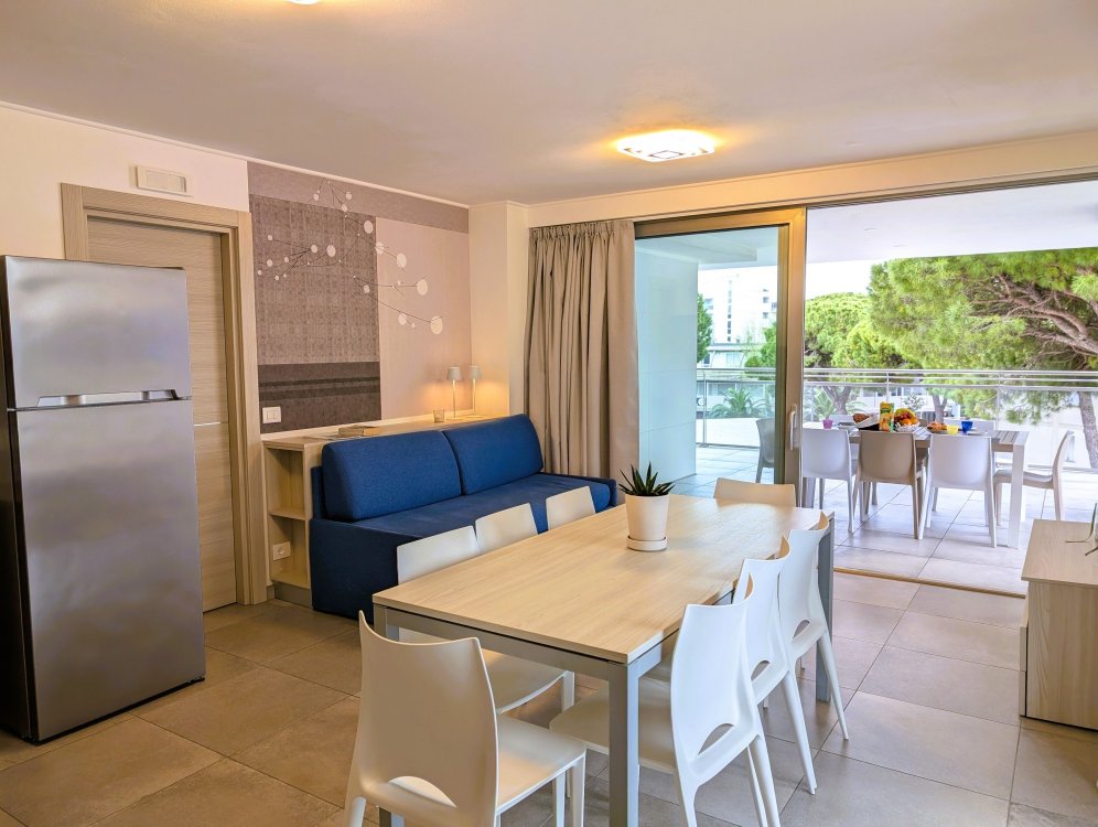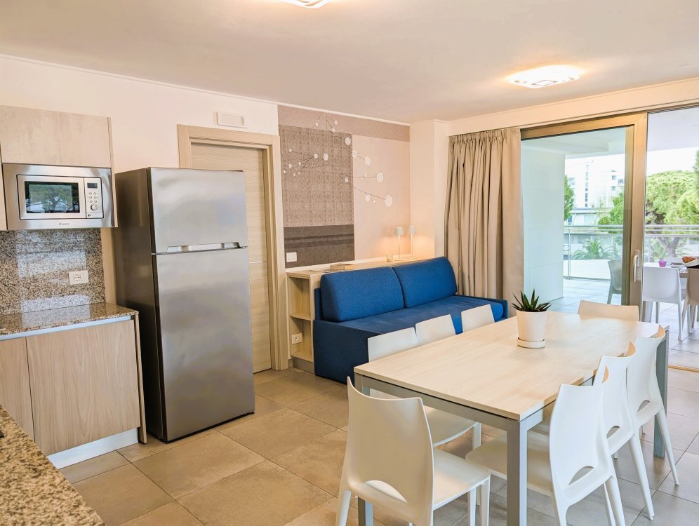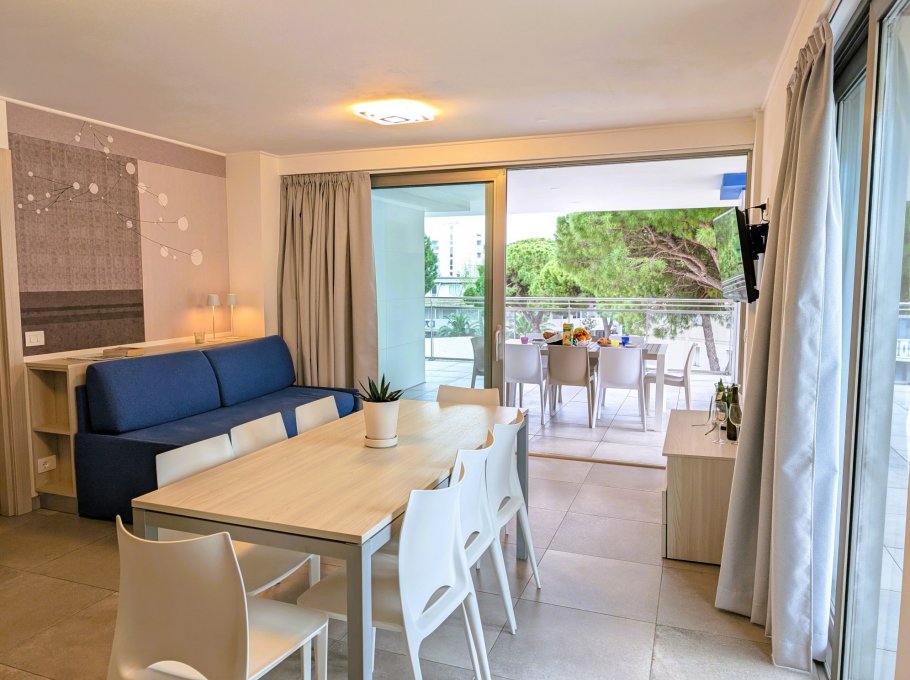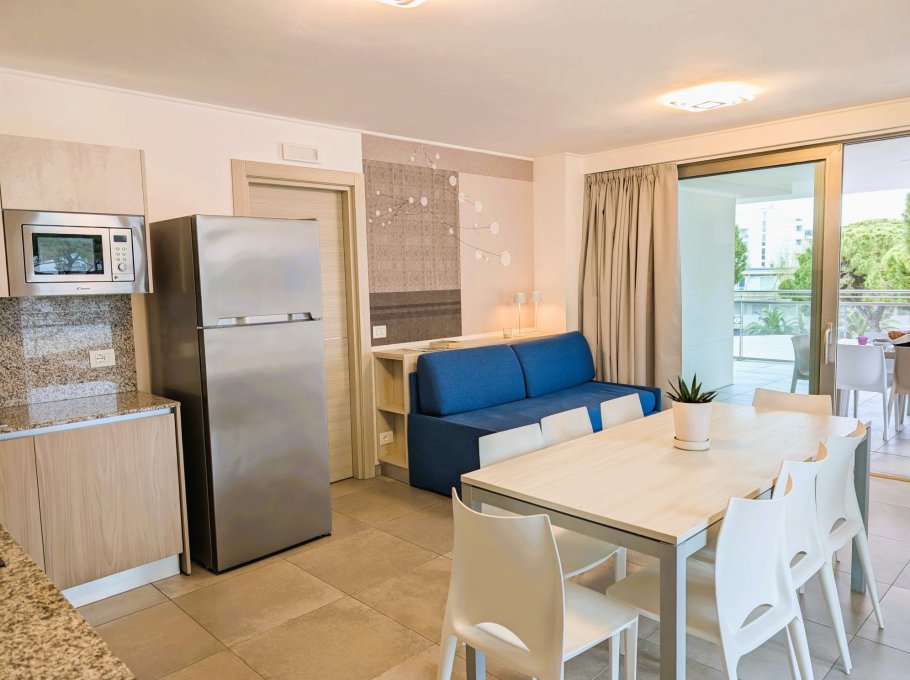 New and elegant building located in Piazza Fontana, in the heart of Lignano, short walking distance (150 meters) from the sea. Thanks to its strategic position, these apartments are ideal for those who want a comfortable holiday not far from the beach and from shops, bars and restaurants. Lift. Per apartment 2 numbered parking places (no minibus). All apartments are elegantly furnished, and offer the best comforts to make you feel at home as security door, safe, SAT-TV (3 Tv at disposal in each apartment: 1 in the living room and 1 in each bedroom), microwave oven, kettle, big fridge with freezer, dishwasher, filter coffee machine, espresso coffee machine Lavazza A Modo Mio®, air conditioning, 2 hair-dryers and washing machine. 1 Light WI-FI free” access included per apartment (for 3 devices at a time. No streaming no download).