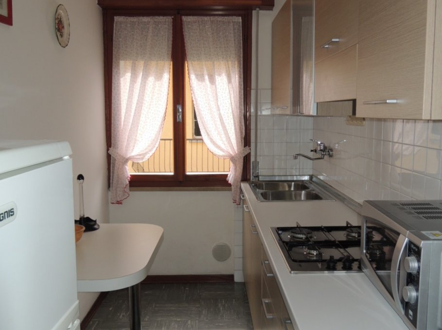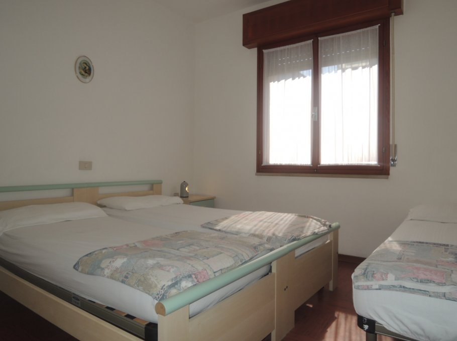 Roomy apartment, on the 1st floor of a small building, with parking space. It is composed by a living room with kitchenette, bathroom with box shower, one bedroom with double bed, one bedroom with double bed and single bed and south-facing terrace. Air conditioning on request (extra charge) € 30.00.