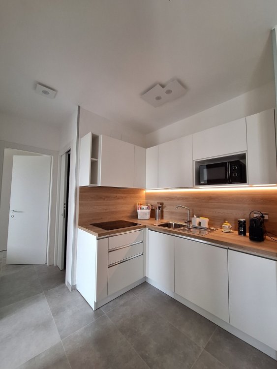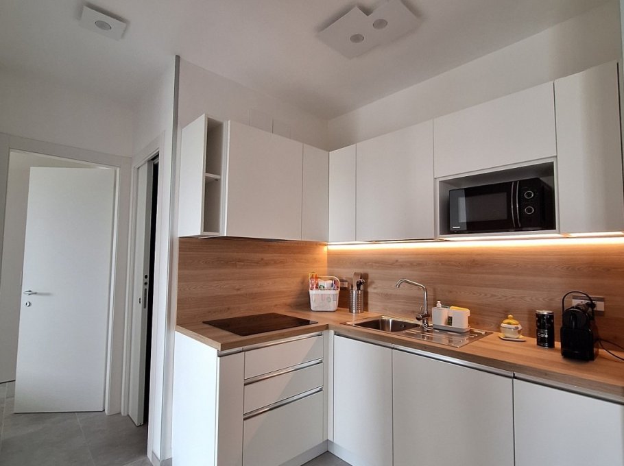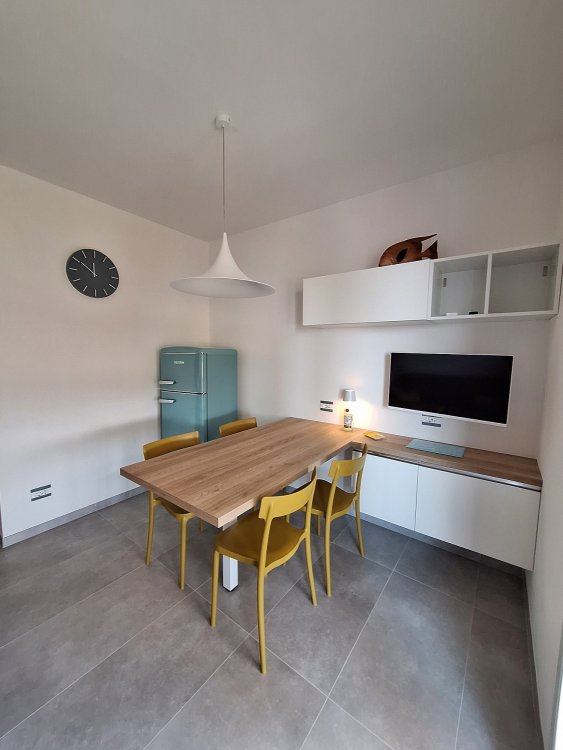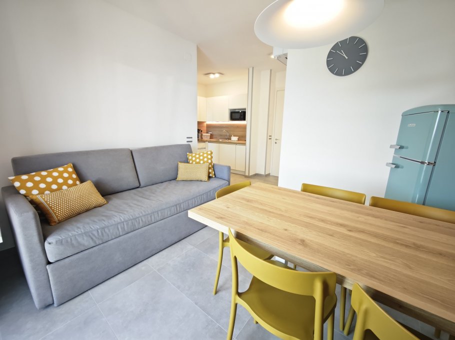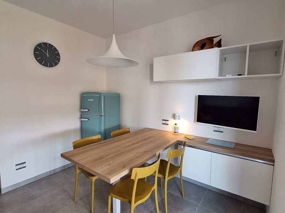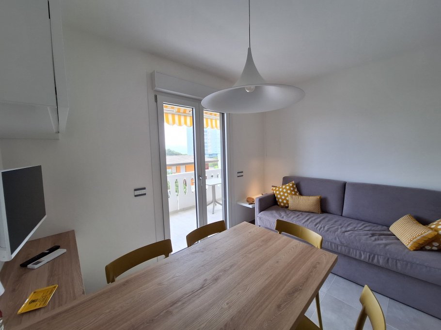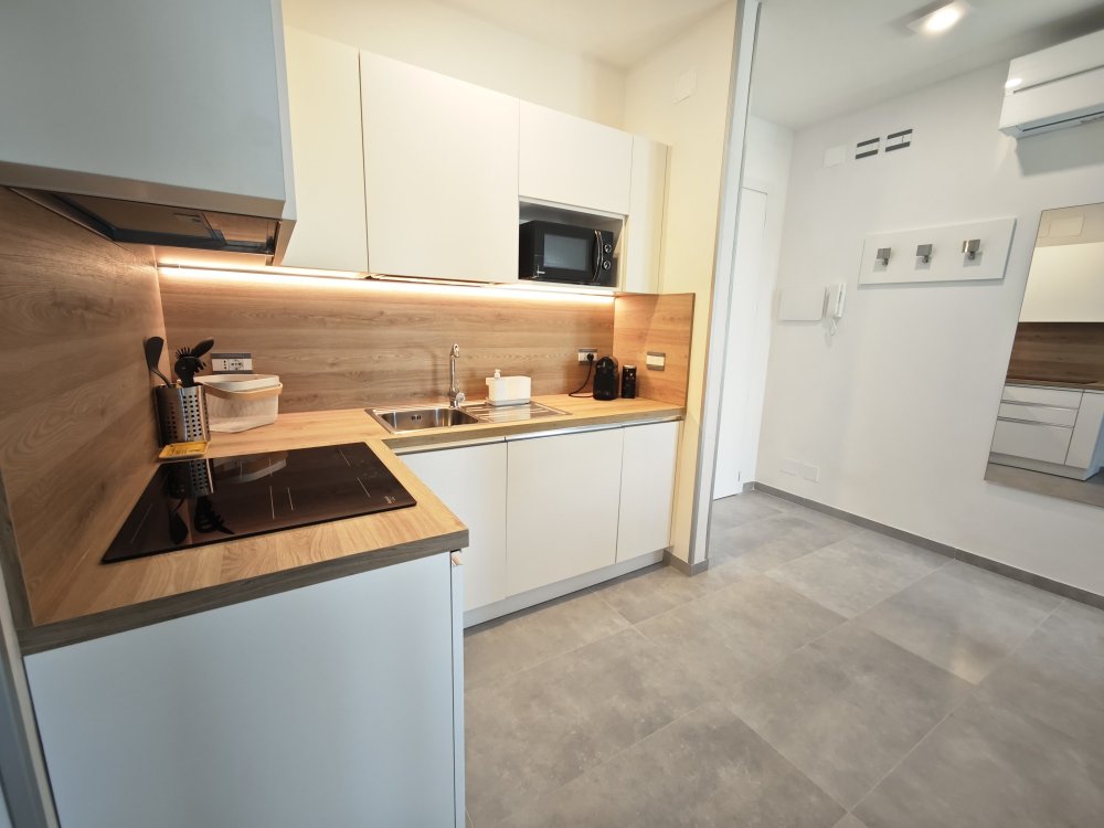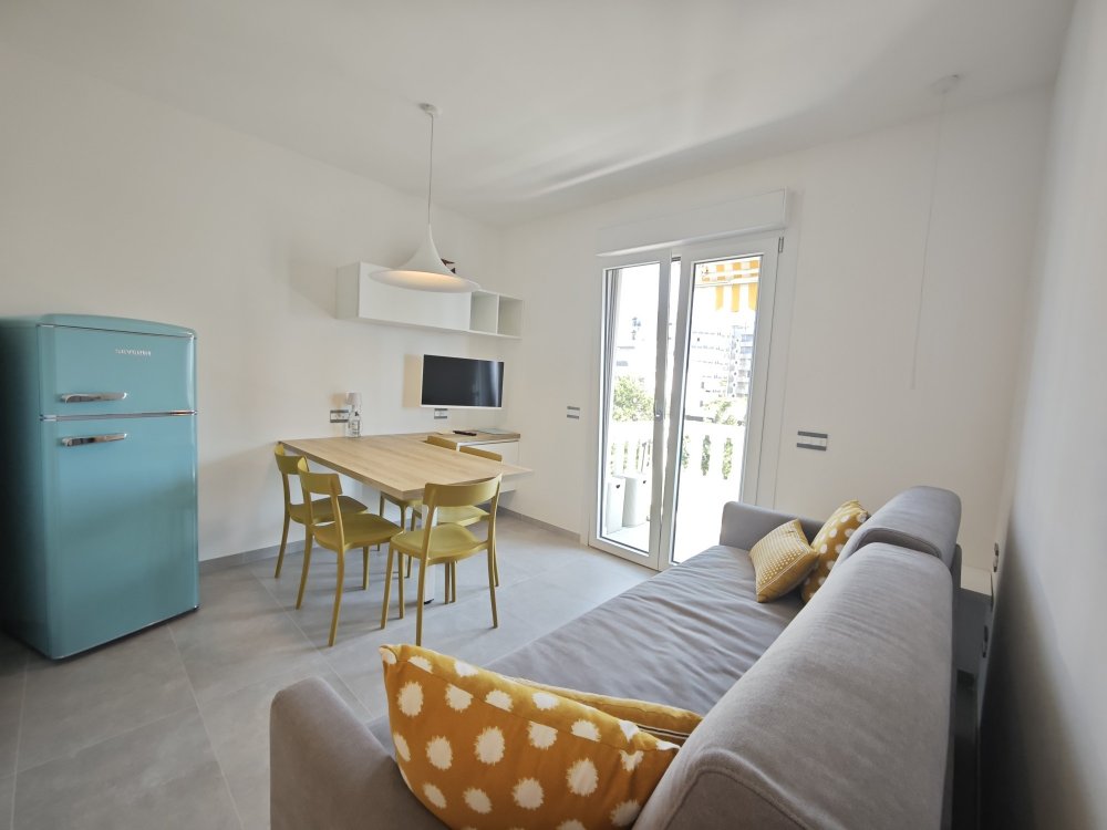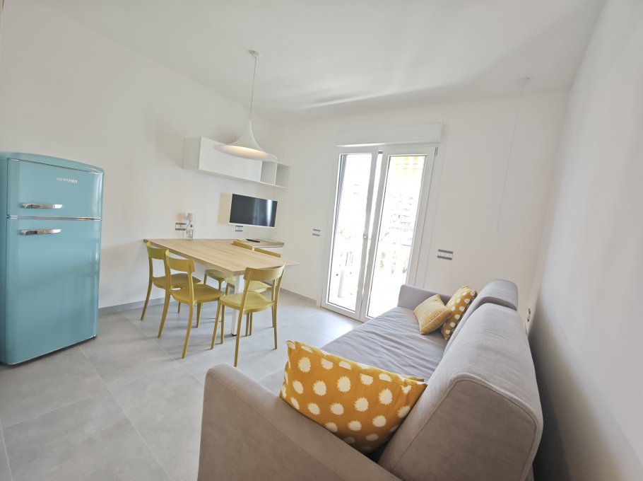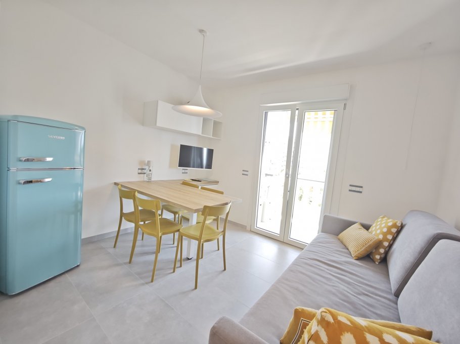 Completely renovated apartment consisting of a living room with kitchenette and terrace with a view, a double bedroom, a single bedroom, and a bathroom.