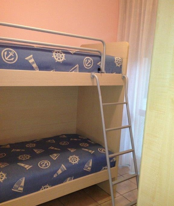 The Flat on 1. floor with lift has got: 1 bedroom with doublebed, 1 bedroom with bunk bed, livingroom with divanbed x 1 pers., cooking area, bathroom with showerbox/WC/bidet, equipped balcony, TV, air-conditioning with fee, washing machine, microwave, safe, new furnishings, parking place not numbered. Initial and check out cleaning in each apartment are done according to COVID protocols.