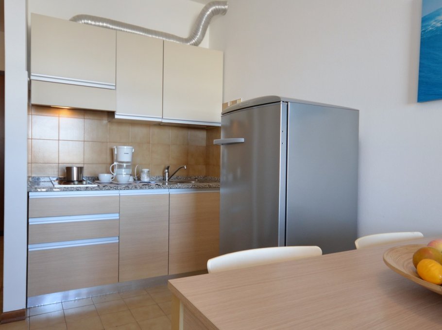 MINI-APARTMENT for 4 persons composed of: living-room with double divan-bed and 2 joinable beds or 2 double divan-beds, kitchen corner, bathroom, balcony. Parking place or garage. Air conditioning.