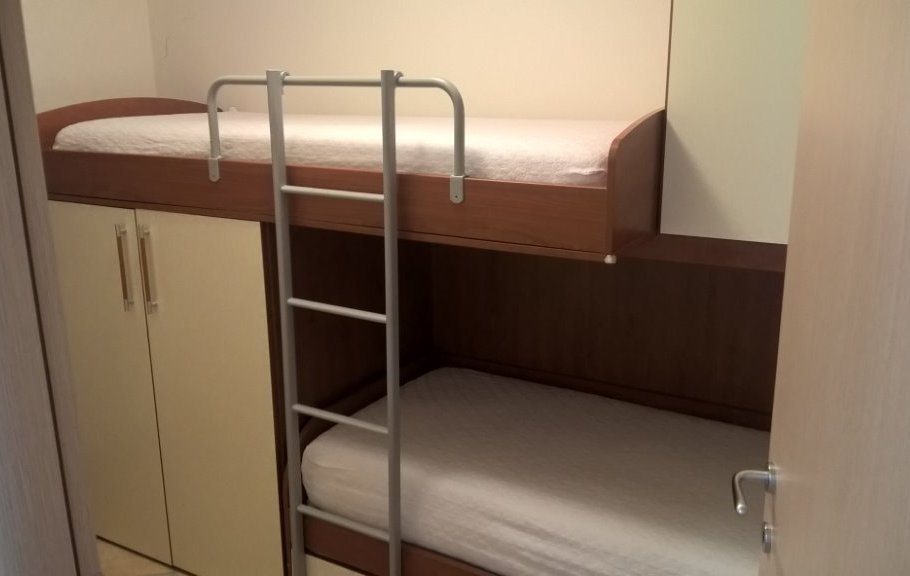 First floor apartment with balcony consists of: living room with sofa bed and kitchen, double bedroom and bedroom with bunk bed, bathroom with shower and free parking space. All rooms are air conditioned.