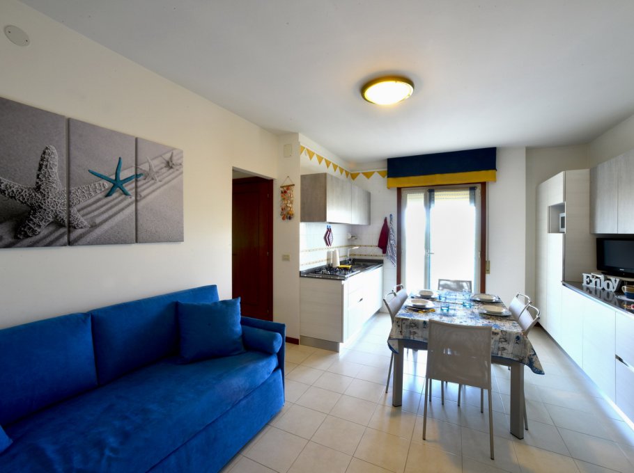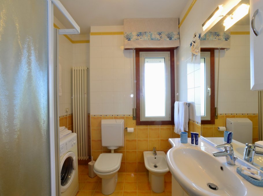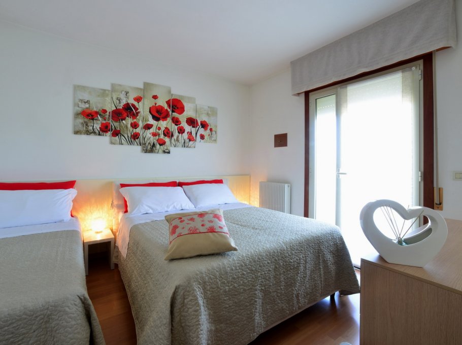 Type C - Made up of: living room with kitchenette and sofà bed for two persons, double bedroom plus one single bed, bathroom with shower, big terrace (third floor with lift). Equipped with: Sat-Tv, washing machine, microwave, safe, air-conditioning/heating. Services included in the price: - weekly change of bed linen and towels; - cleaning of apartment on day of departure, taxes; -Wi-Fi, - beach material (1 beach-umbrella and 2 beach-beds) at beach office nr.11 Lignano Sabbiadoro; - use of swimming pool and fitness room in Hotel Colorado in Lignano Pineta; - use of parking facilities (unattended); - use of bicycles; - Sunday evening aperitif in our hotel bar. - ON REQUEST IT IS POSSIBLE TO STAY LONGER OR SHORTER THAN 7 NIGHTS -
