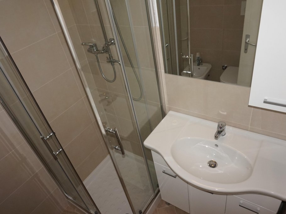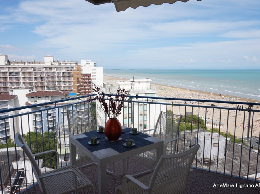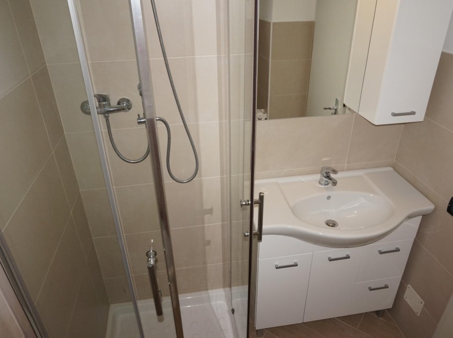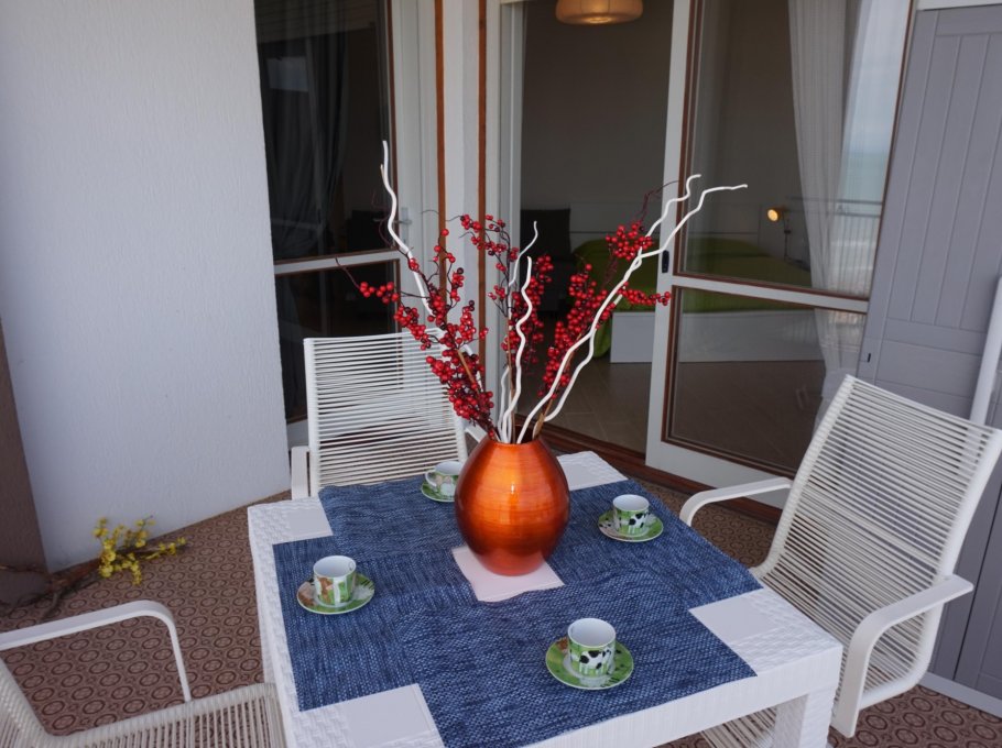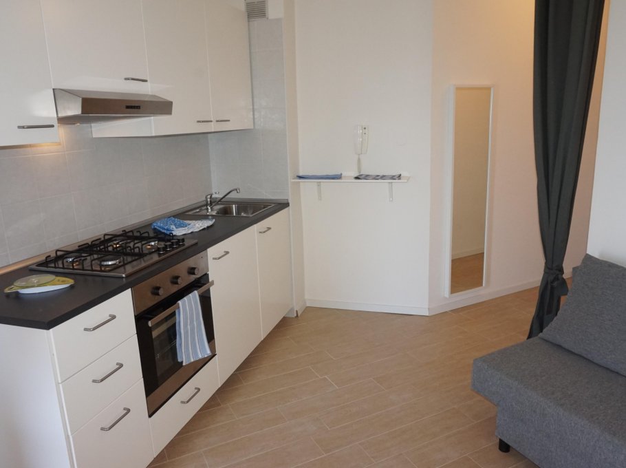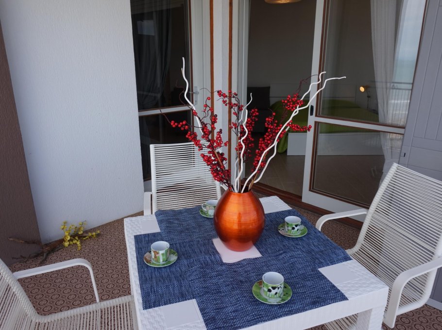 Nice studio apartment for up to 4 people, on the 12th floor, consisting of: living room with a fixed double bed and a sofa bed for one and a half, kitchenette with electric oven, low refrigerator, with small freezer compartment, renovated bathroom with shower, terrace with wonderful frontal sea view, equipped with table and chairs. The apartment is equipped with TV, air conditioning. Closed parking with electric barrier, not numbered, limited parking spaces.