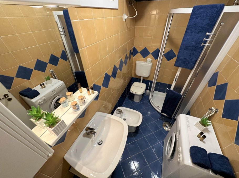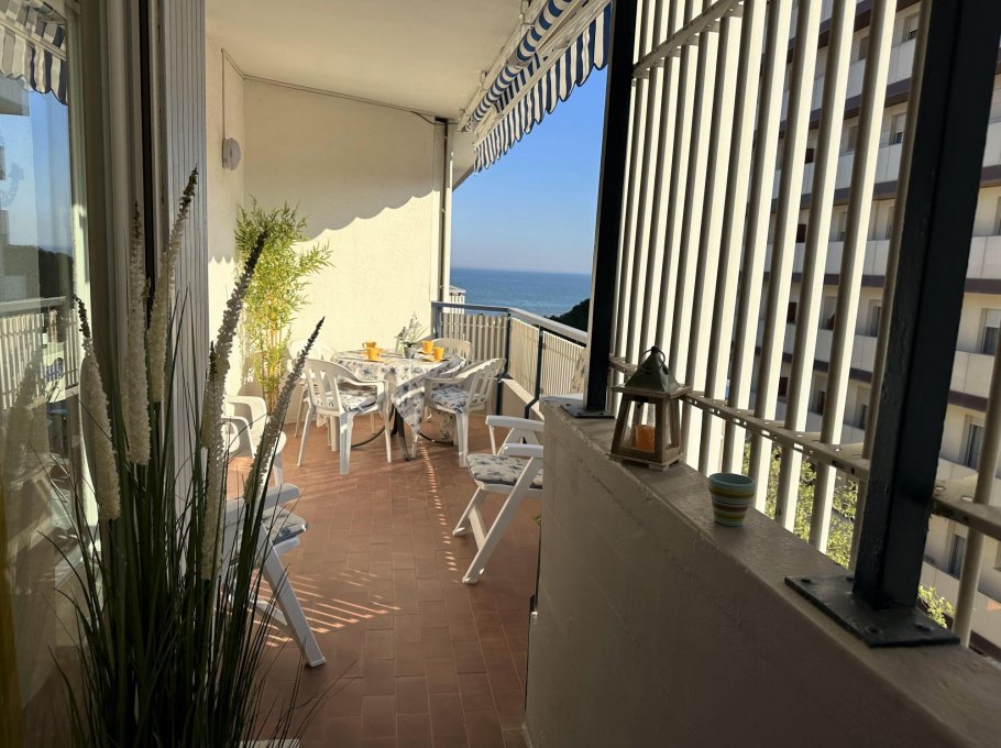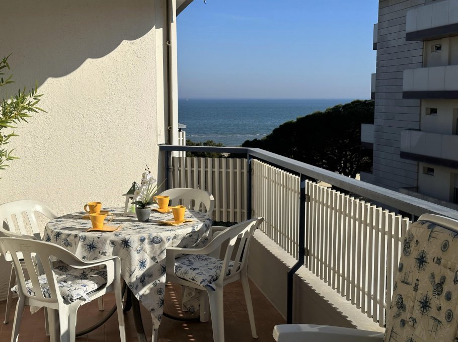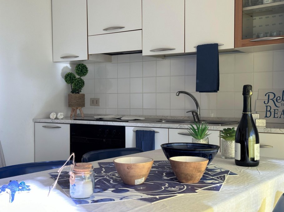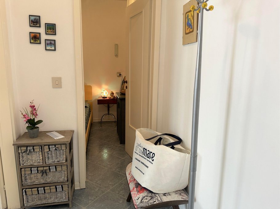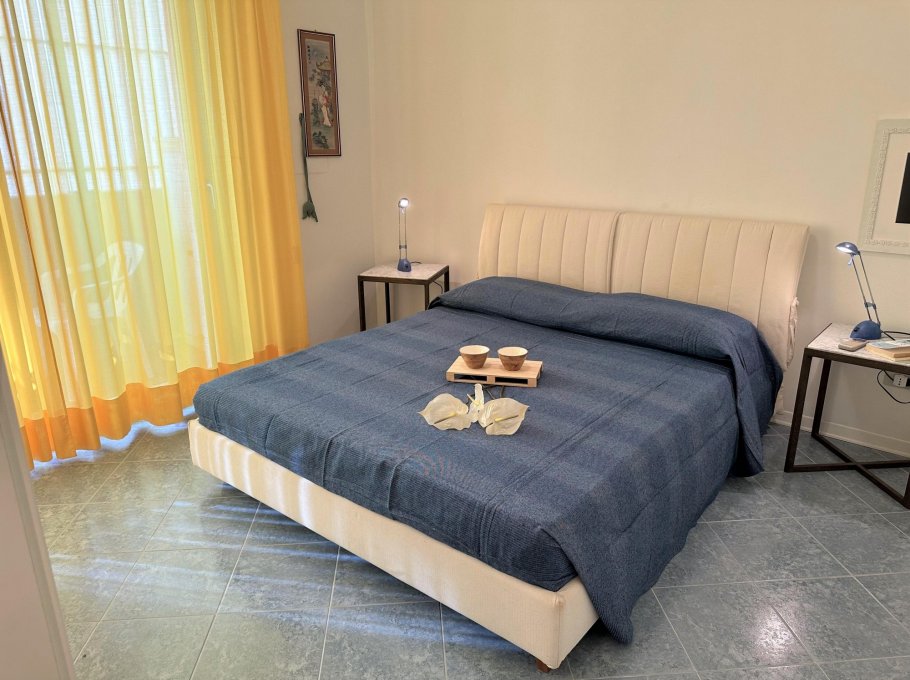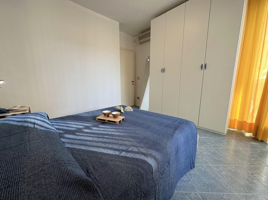 Renovated apartment located on the fourth floor and composed of a living room with kitchenette with sofa bed, large terrace with side sea view, electric awning and equipped with table and chairs.