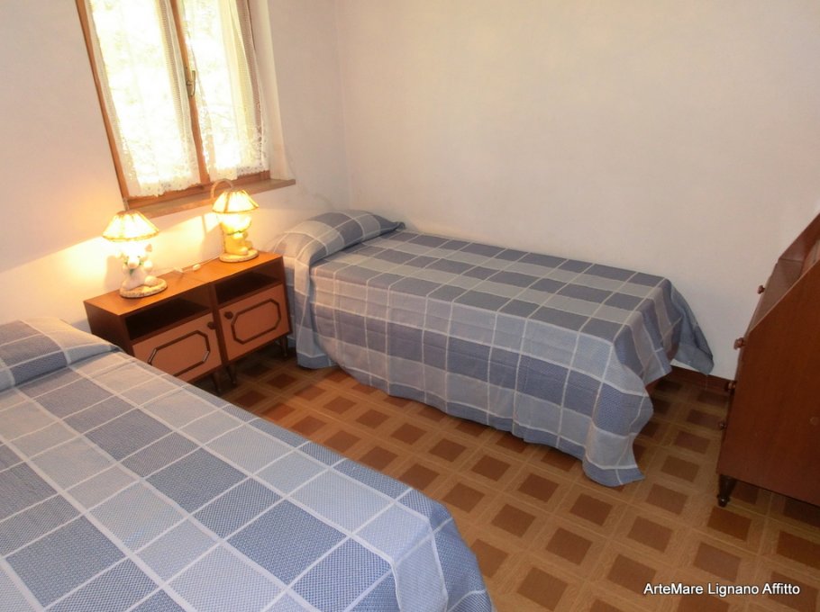 Pretty villa on 2 floors with nice private garden and 2 parking place. The ground floor is composed of separate kitchen, living dining room with double couch, furnished terrace, unfenced garden front and back. On the first floor 1 Double bedroom , 1 bedroom with 2 single beds, bathroom with shower, washing machine and window, 2 nice balconies.