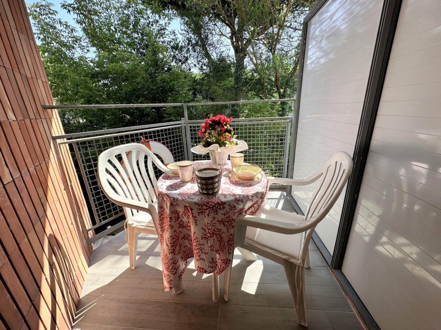 Small three-storey building with shared garden and private parking, located in a green and quiet area, a stone's throw from the beach and essential shops.