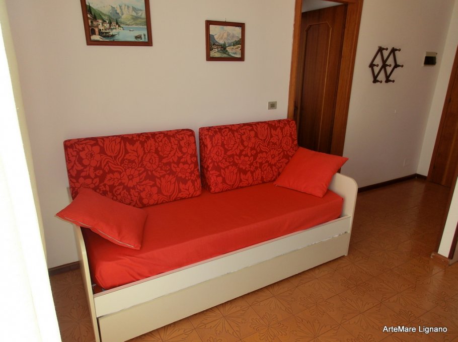 Nice apartment at the 4th floor with elevator and private covered parking composed of living-dinning room with double couch and cooking corner, nice sea view balcony furnished with table and chairs, renovated bathroom with window and shower box, double sleeping room.