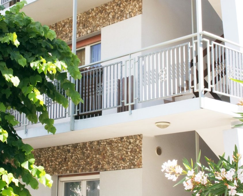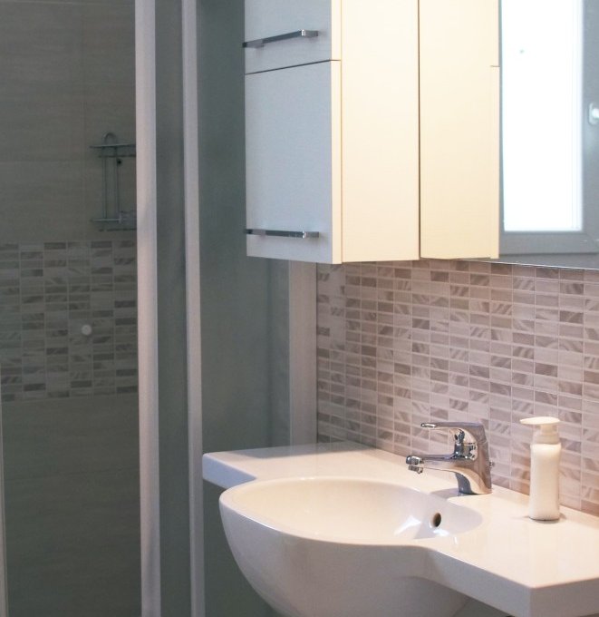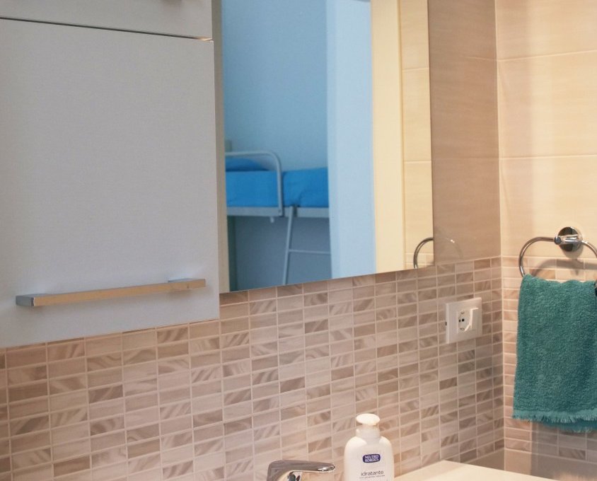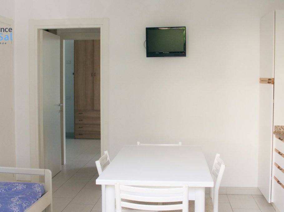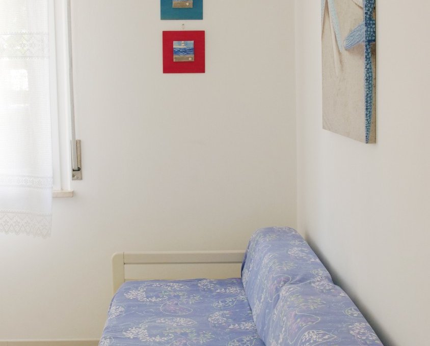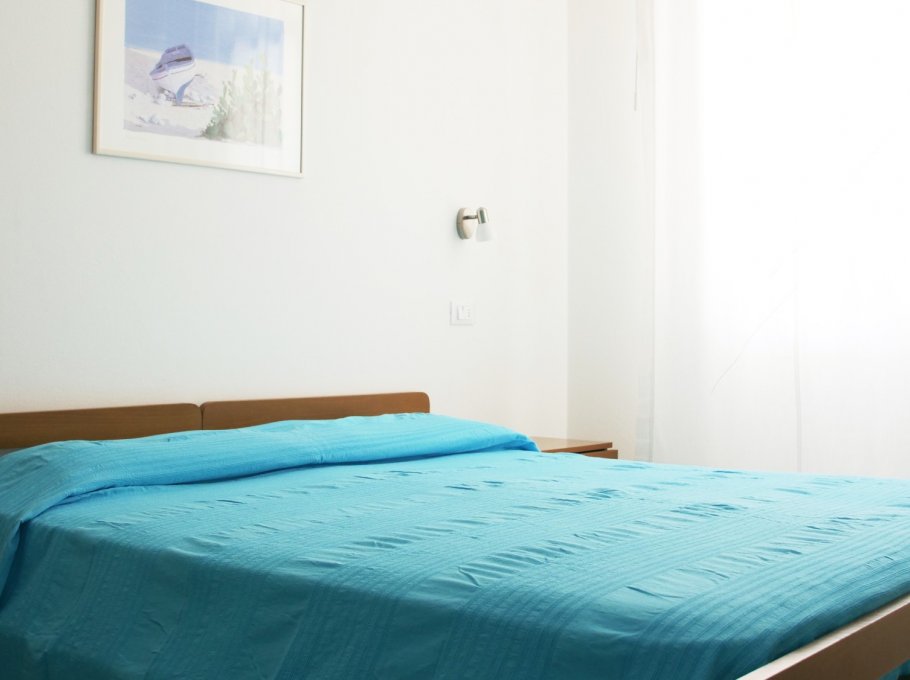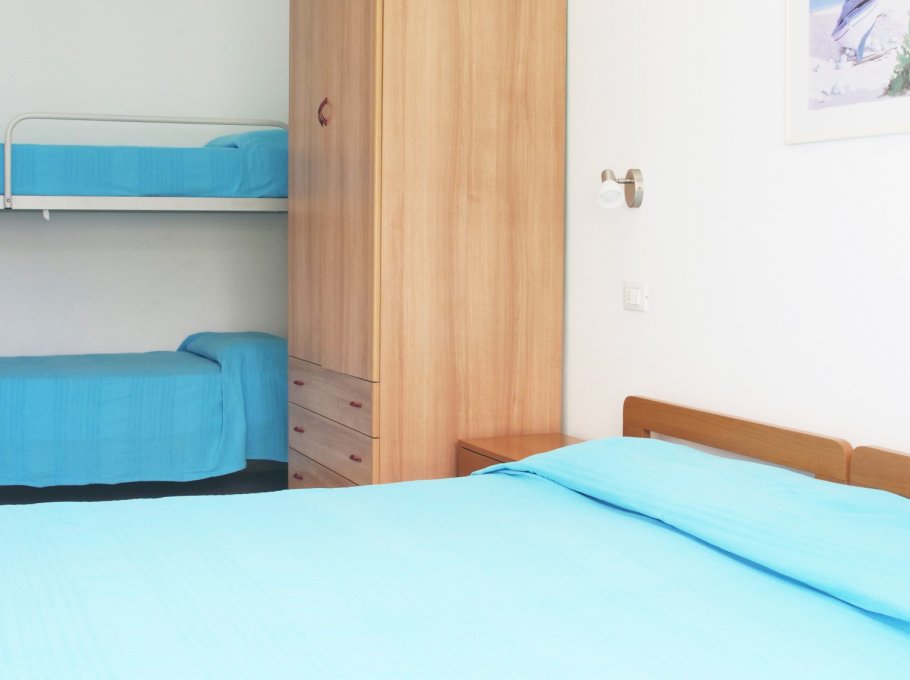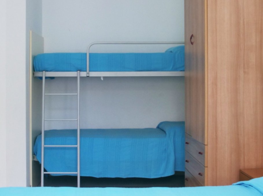 Apartment type B – Large two-room flat composed by a kitchen-dining room with a sofa, a bedroom with a king-size bed and a bunk bed, garden. 4 guests max.